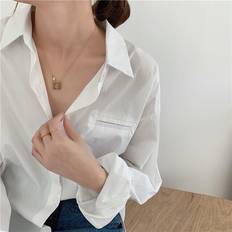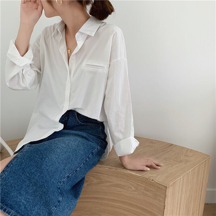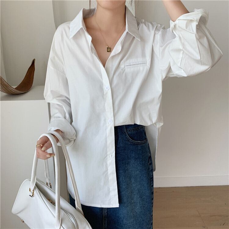 シャツ スプリングソリッド カラースタンダードトップス ロング レトロ 春物 ソリッドカラー YY-ファッション39788478460