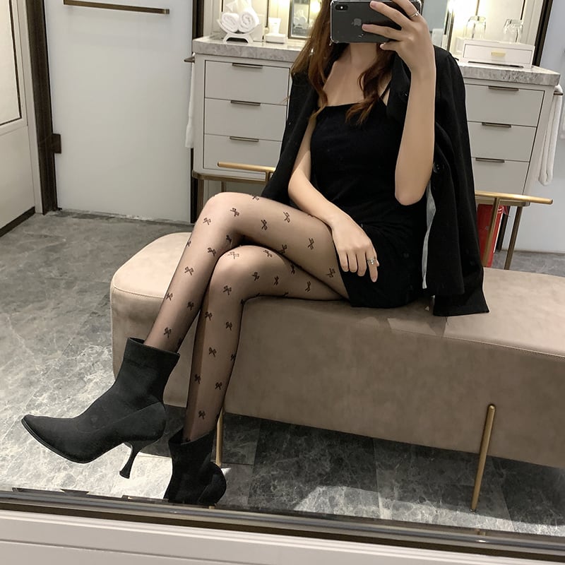 オータムウィンターブラックレースストッキング 薄手リボンソックス 秋物 冬物 タイツ YY-ファッション81087529531