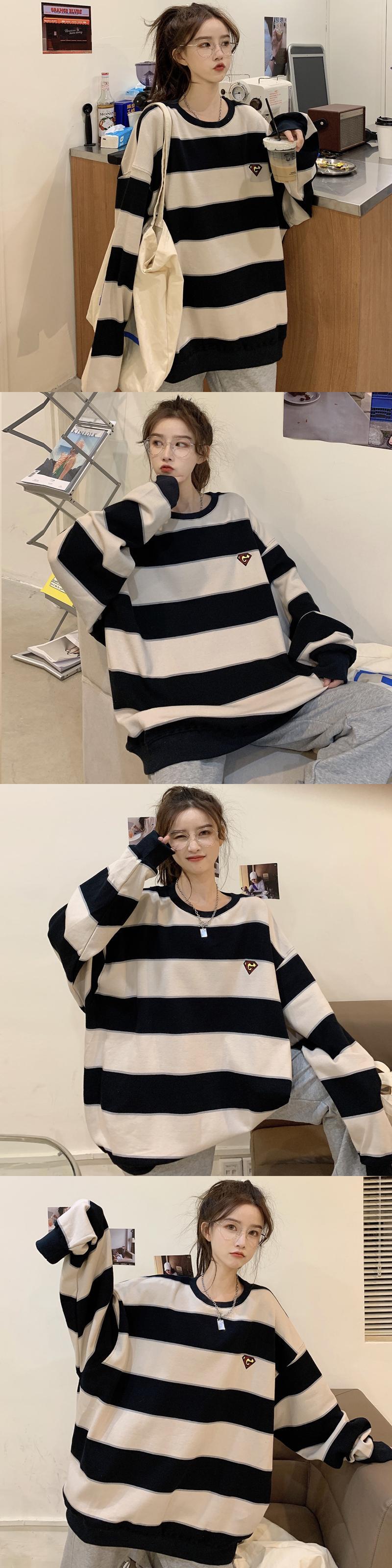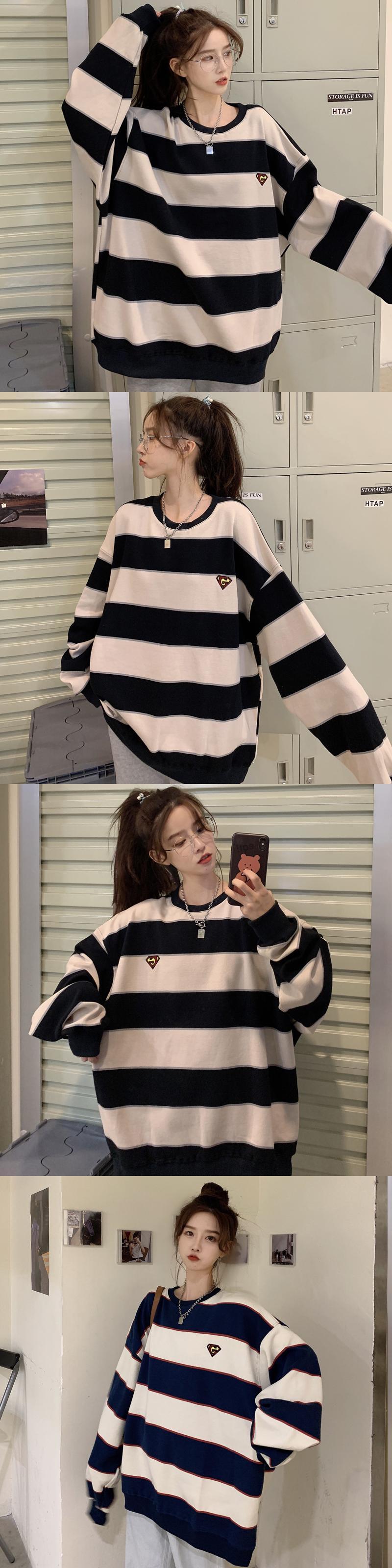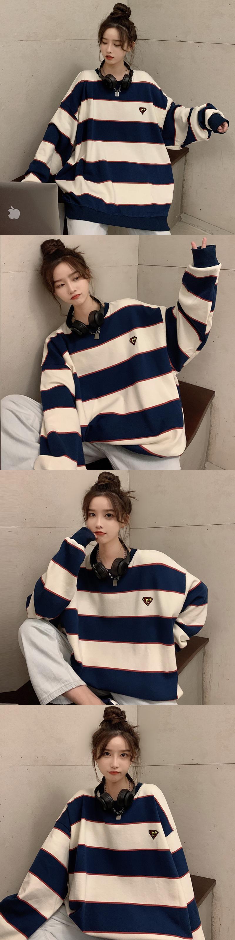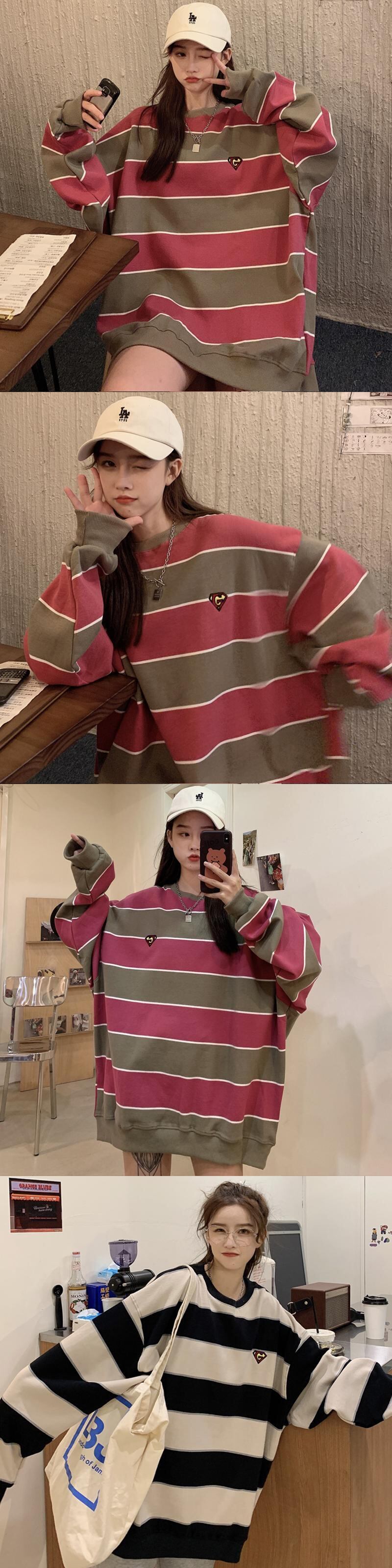 ルーズストライプセーター スプリングオータム薄手レッドトップス ロング 春物 秋物 YY-ファッション24526177648