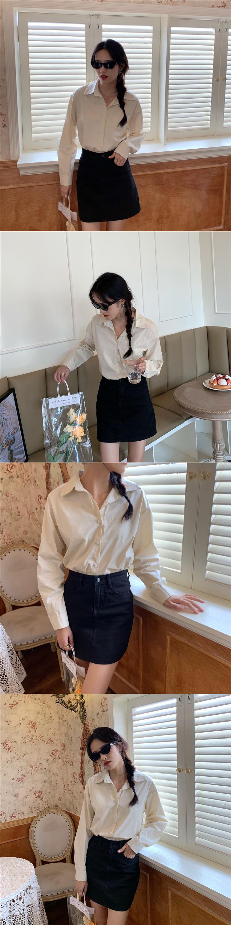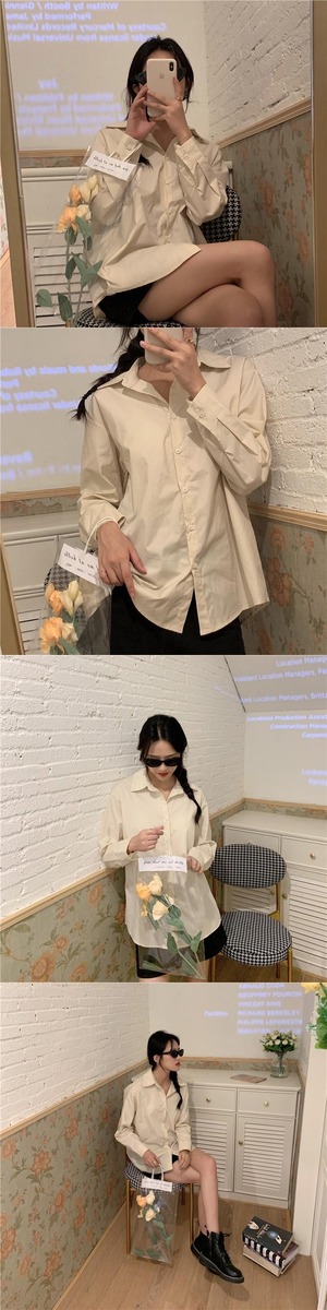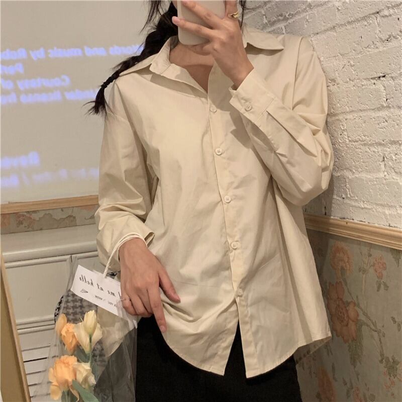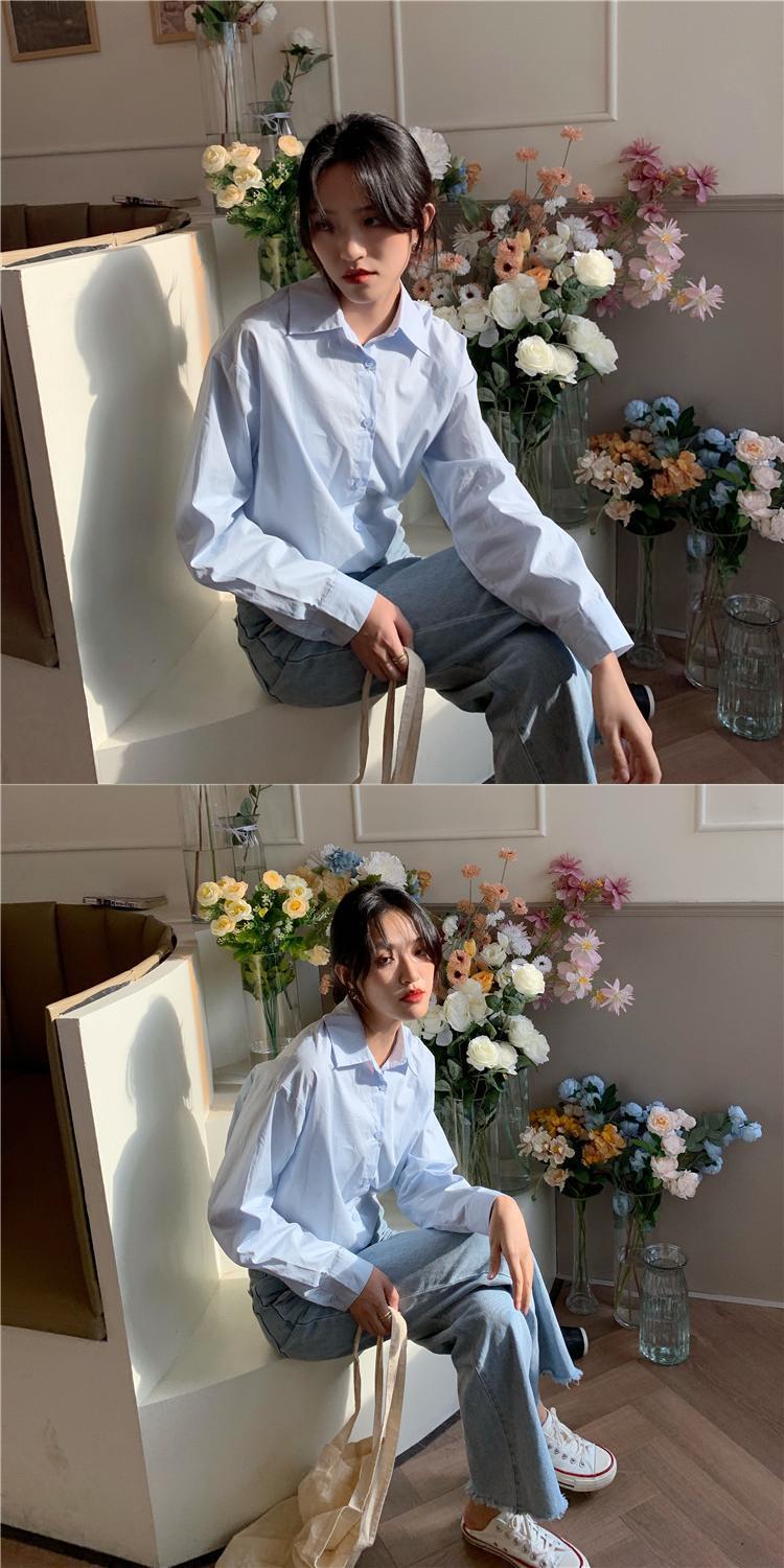 スプリングスタンダードスタイルシャツ ブルーレディースルーズトップス ロング レトロ 春物 YY-ファッション99871523506