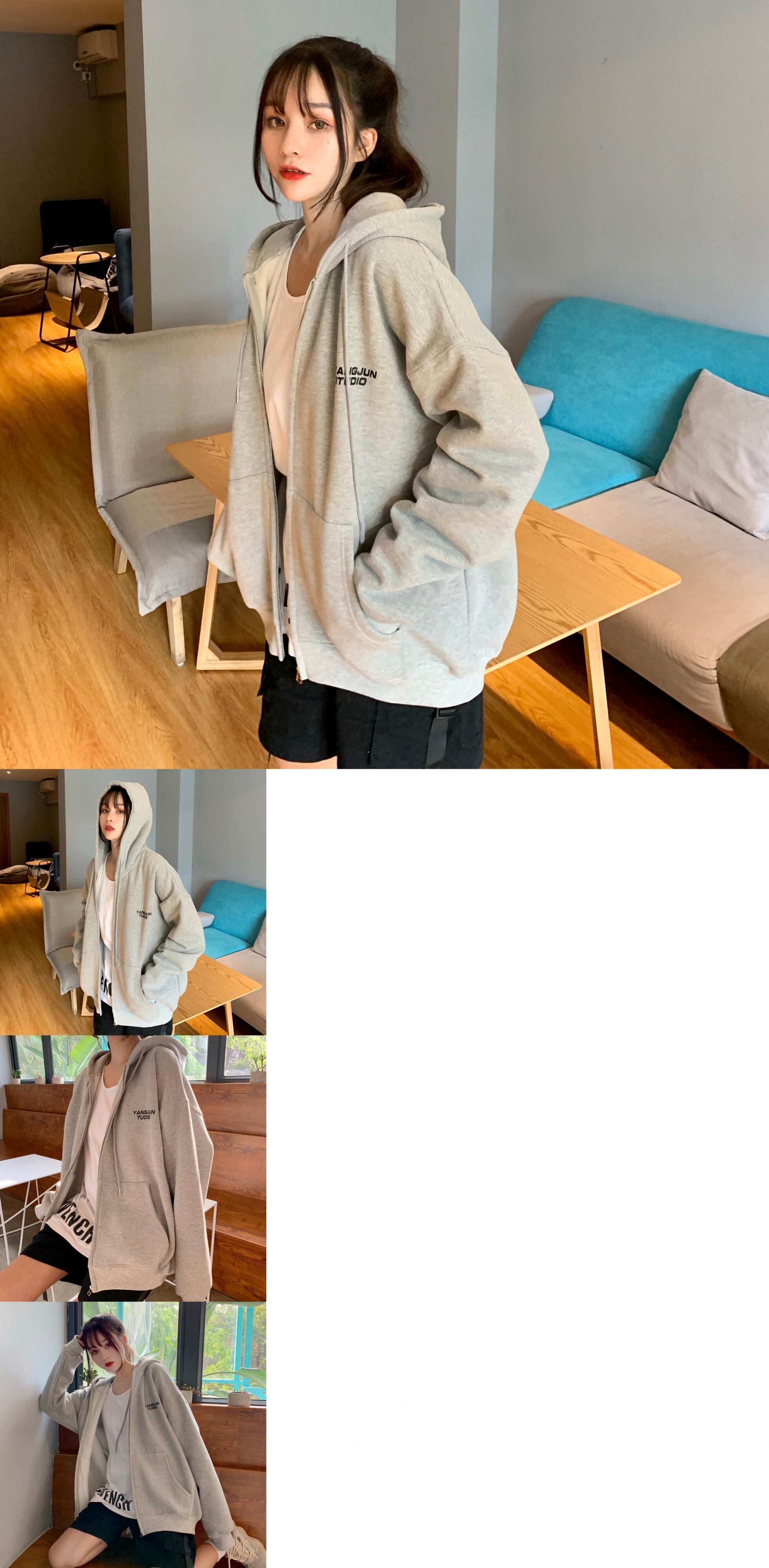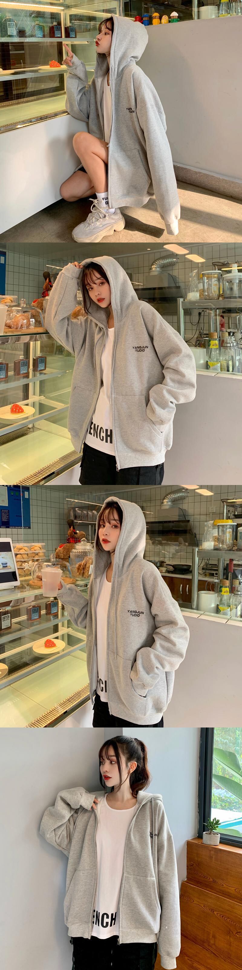 オータムスタイルルーズグレーブラウス ベルベットフードセーター ジャケット レディース ロング 秋物 YY-ファッション80315534109