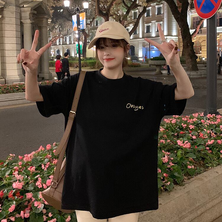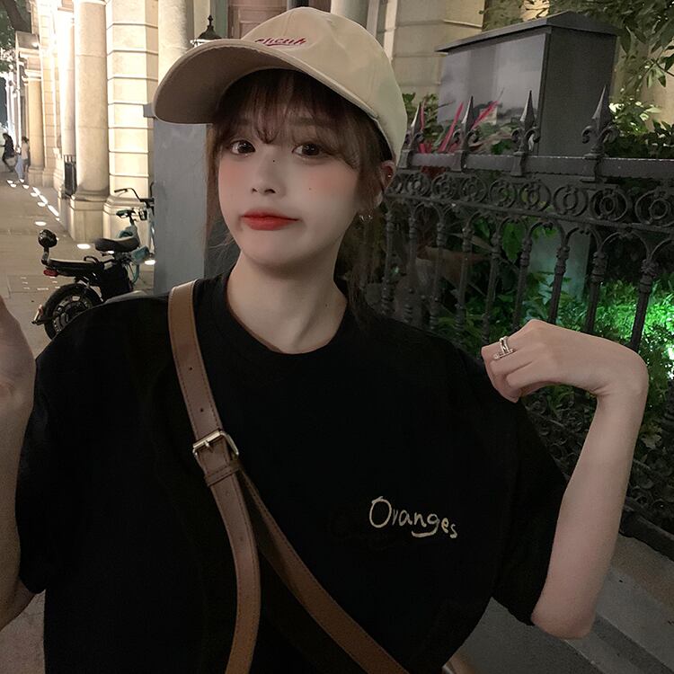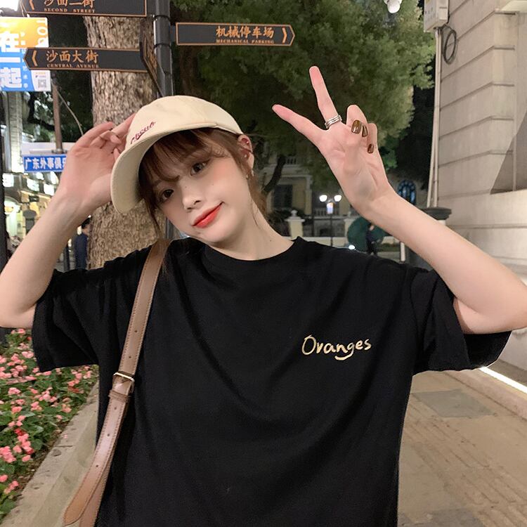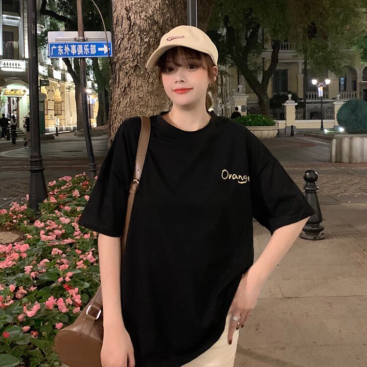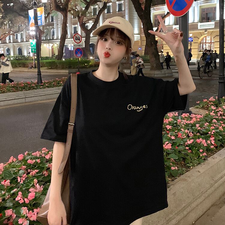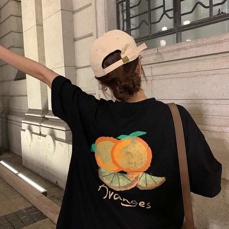 ラウンドネックバックオレンジプリント柄シャツ スプリングTシャツ レディース 春物 Oネック YY-ファッション60669806885
