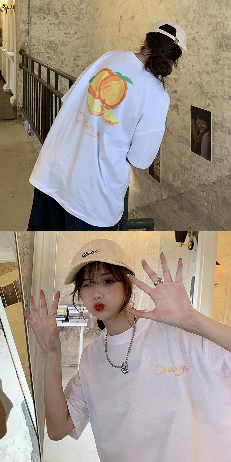 色:ホワイトバックオレンジプリントT,ブラックバックオレンジプリントT