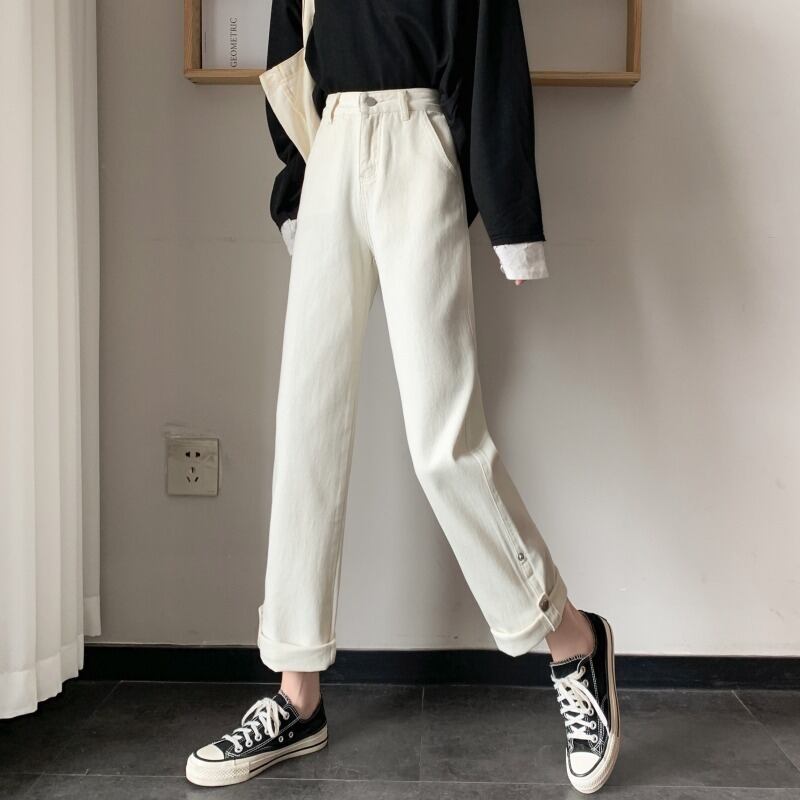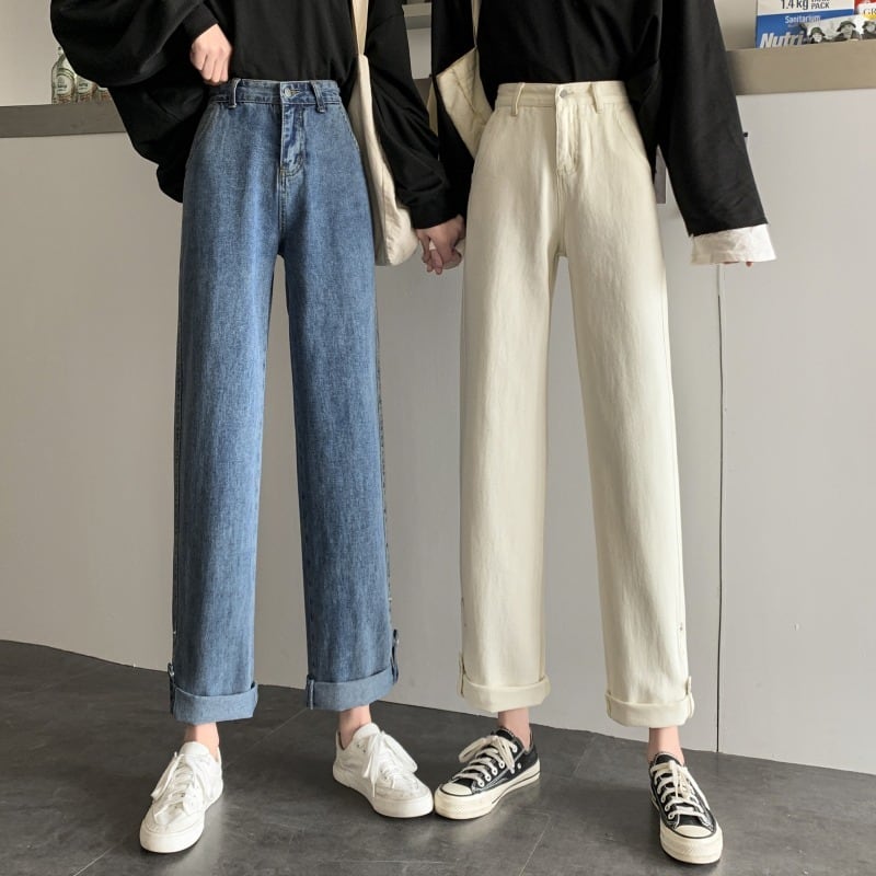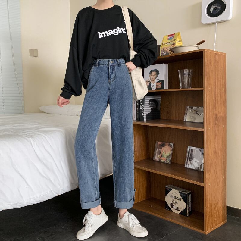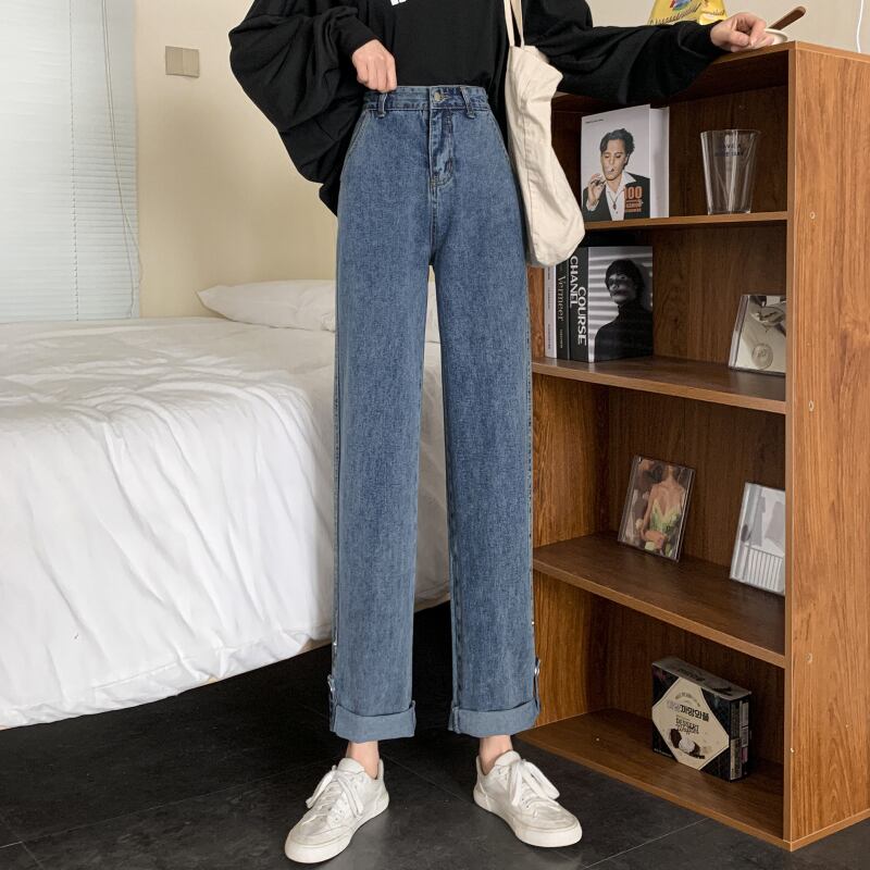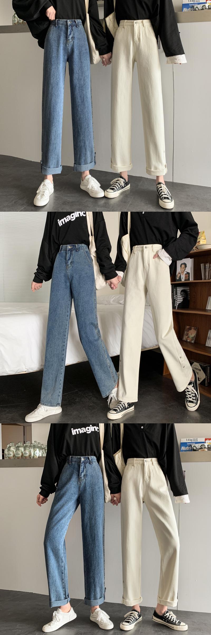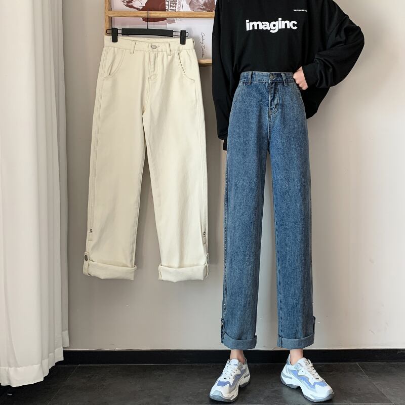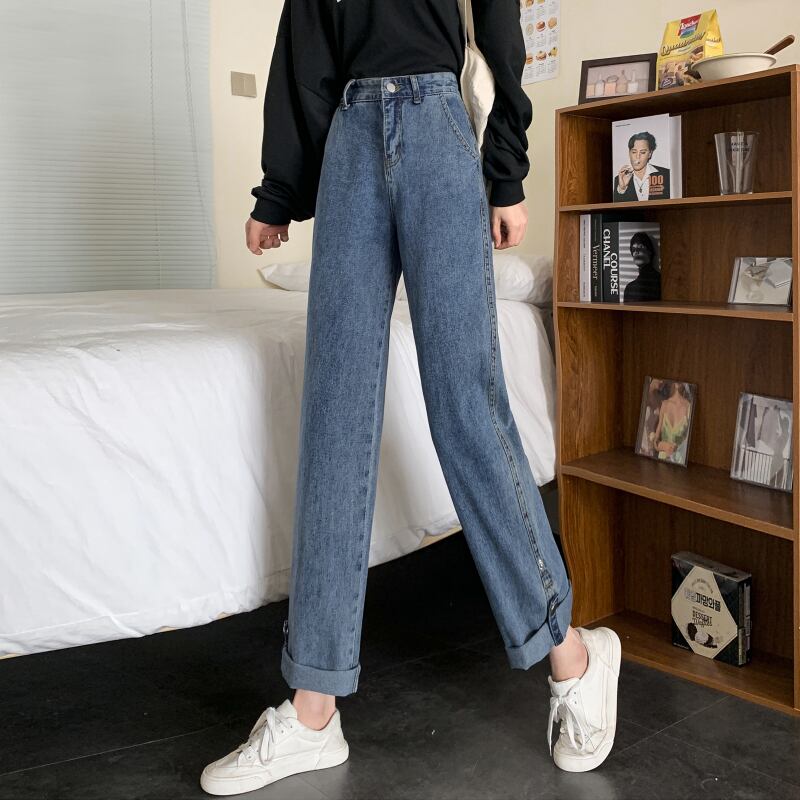 スプリングスタイルハイウェストウェストルーズワイドレッグジーンズ 春物 アジャスタブル ワイドパンツ YY-ファッション98557467961