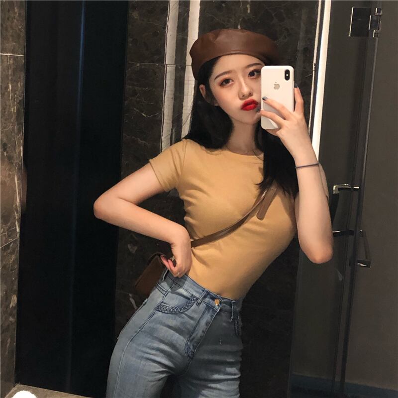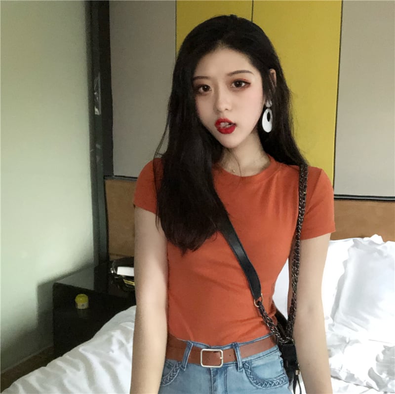 スタンダードスリムTシャツ スプリングオータムスタイルソリッド カラーベーシックトップス レトロ 春物 秋物 ソリッドカラー YY-ファッション62628414132