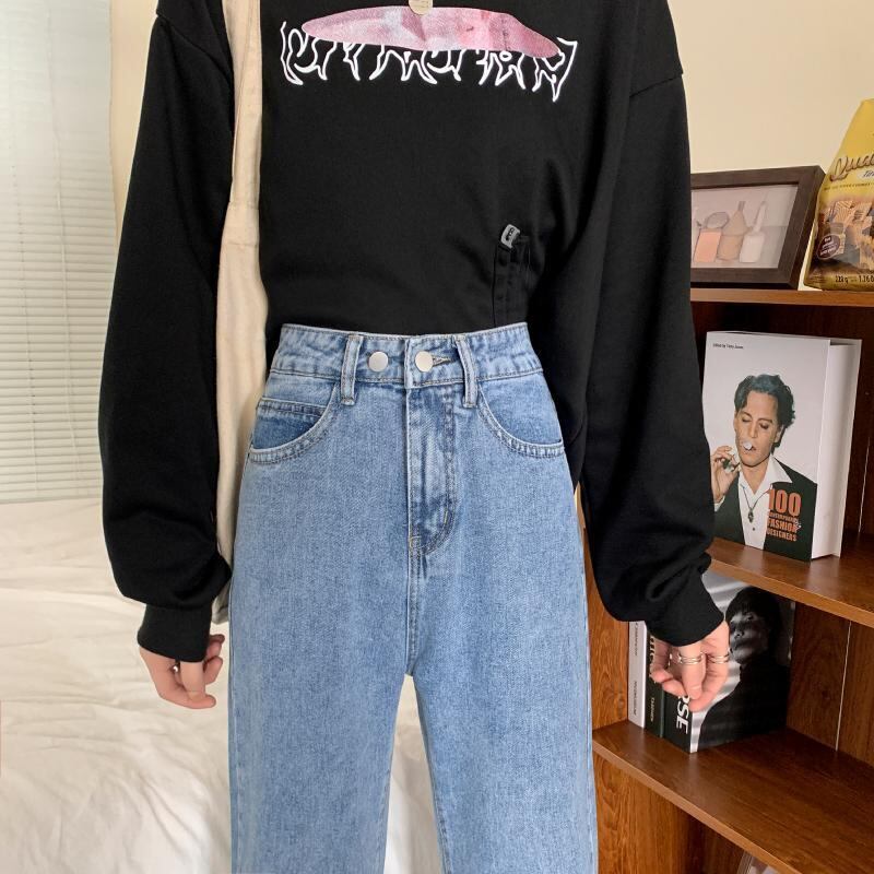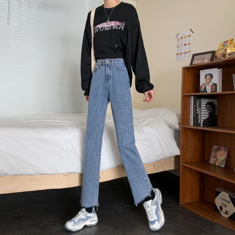 スプリングパンツ スタンダードハイウェストルーズジーンズ レディース レトロ 春物 YY-ファッション11714302606