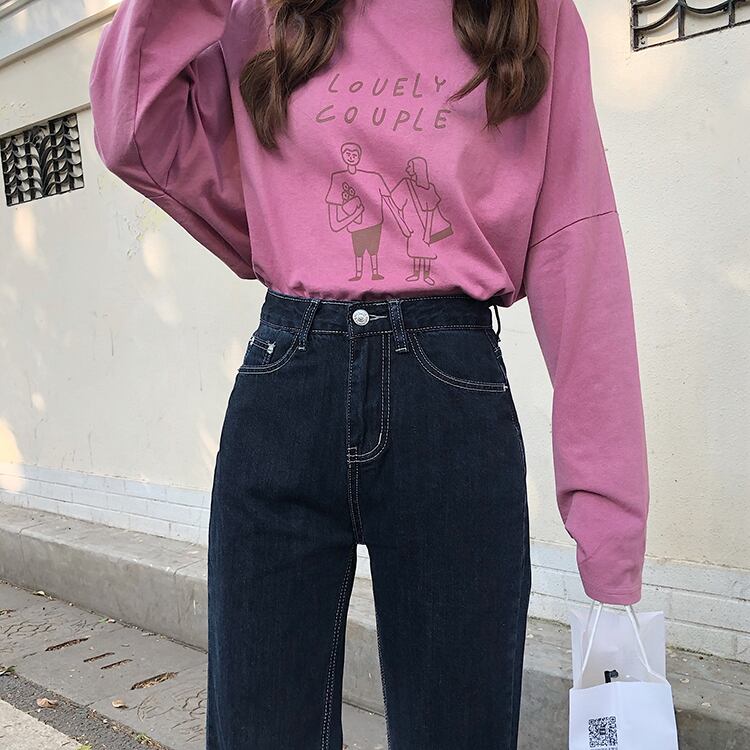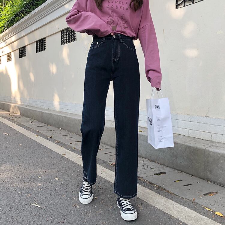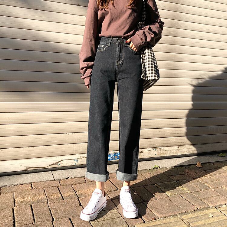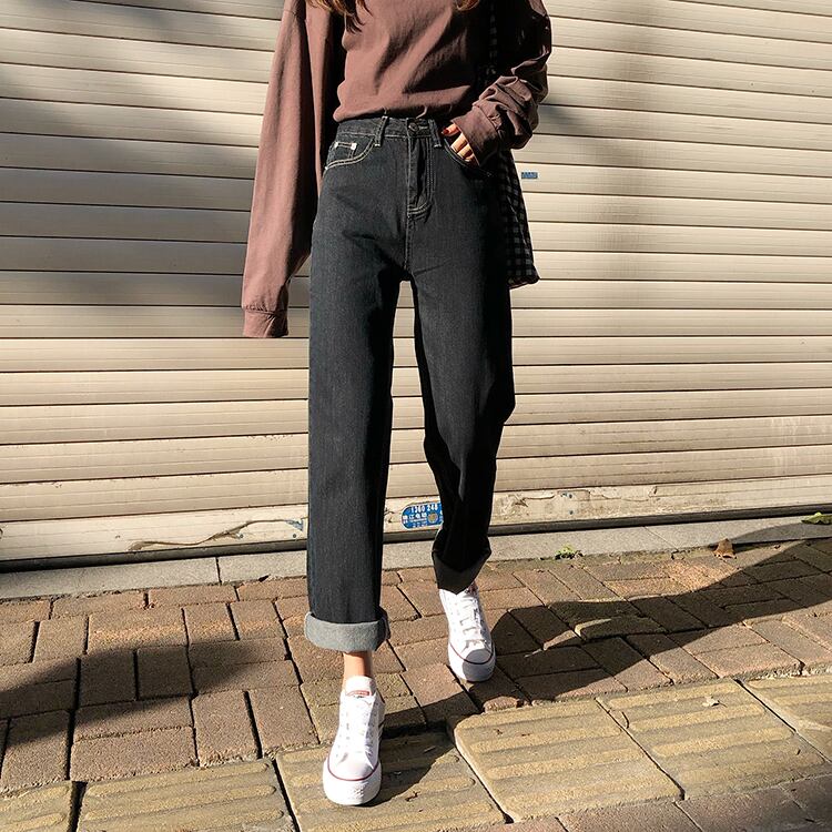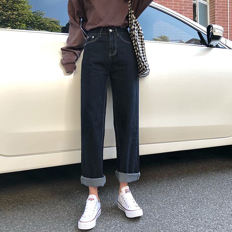 ブラックハイウェストジーンズ ルーズ薄手パンツ YY-ファッション12690329170