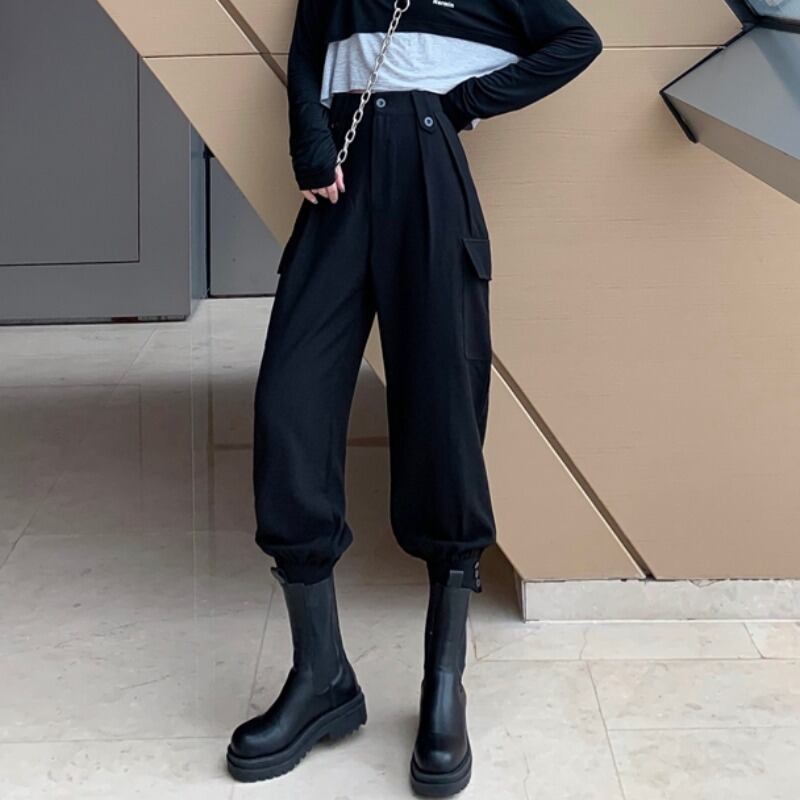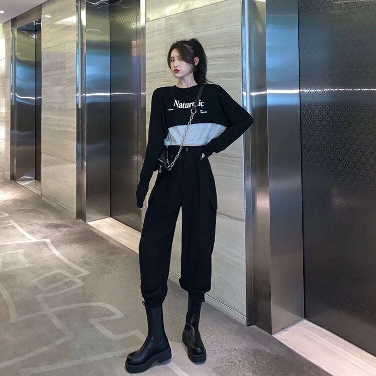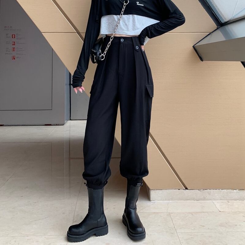 オーバーオール レディースカジュアルスプリングオータムブラックルーズ ハイウェスト 春物 秋物 YY-ファッション71465337808