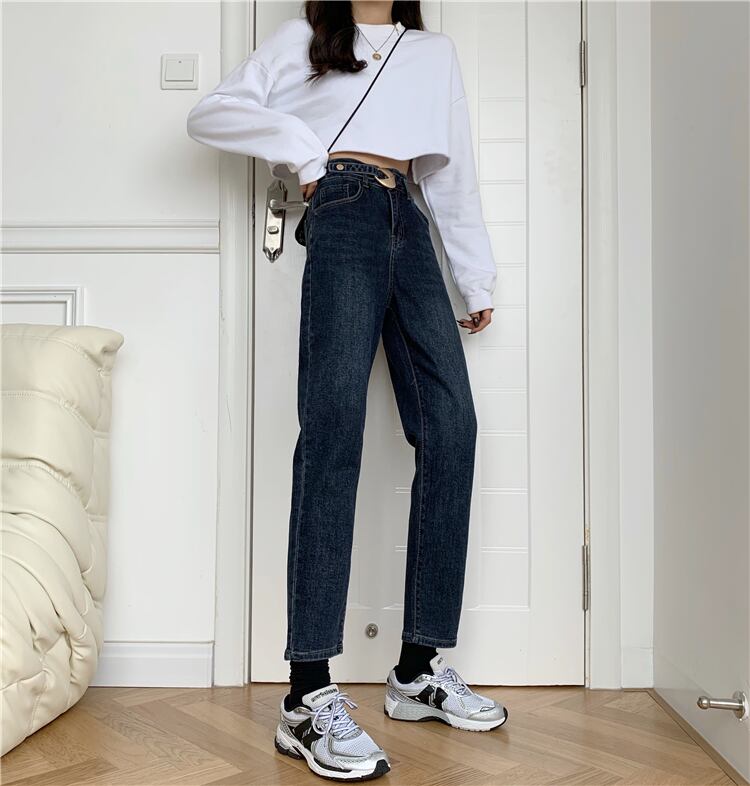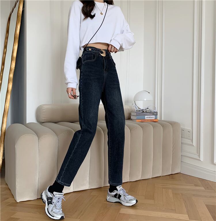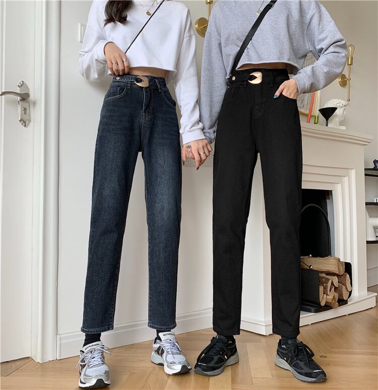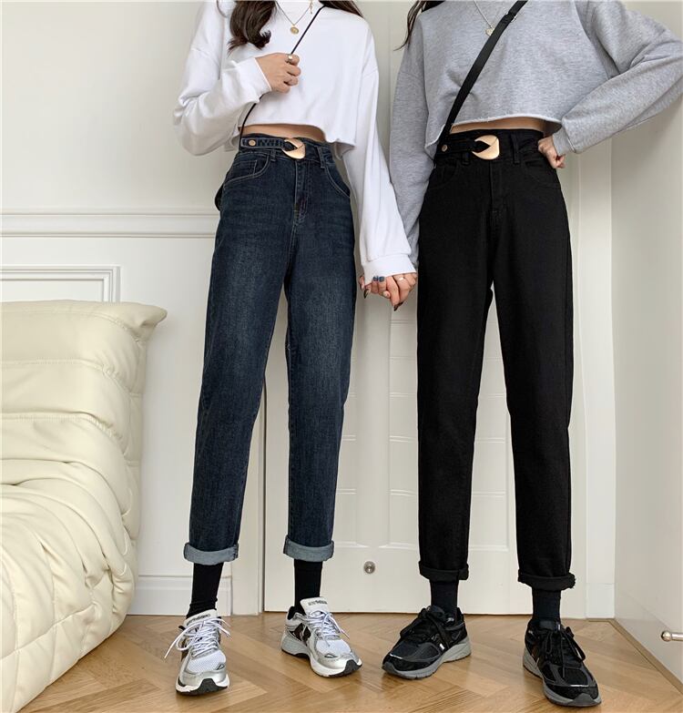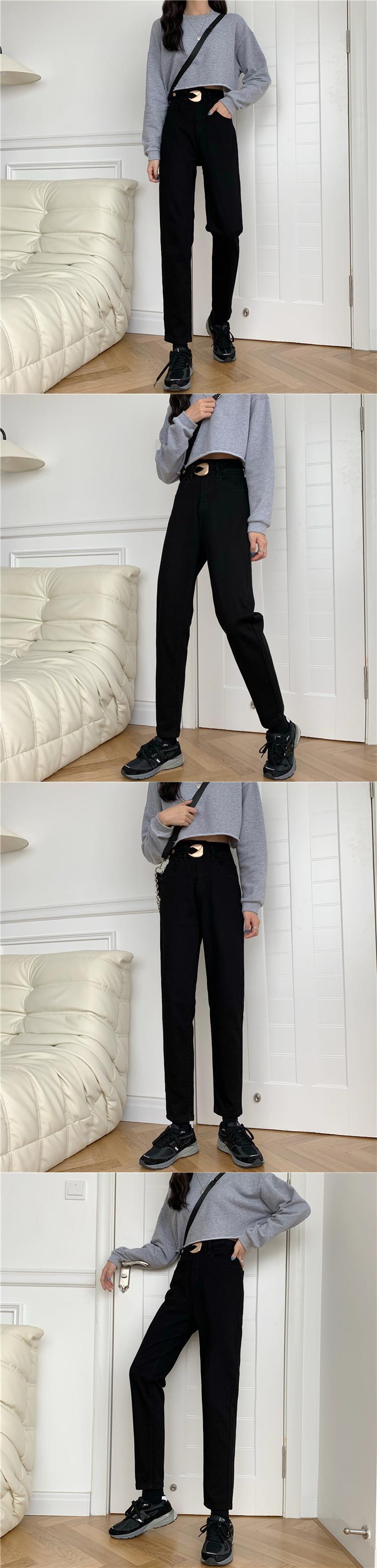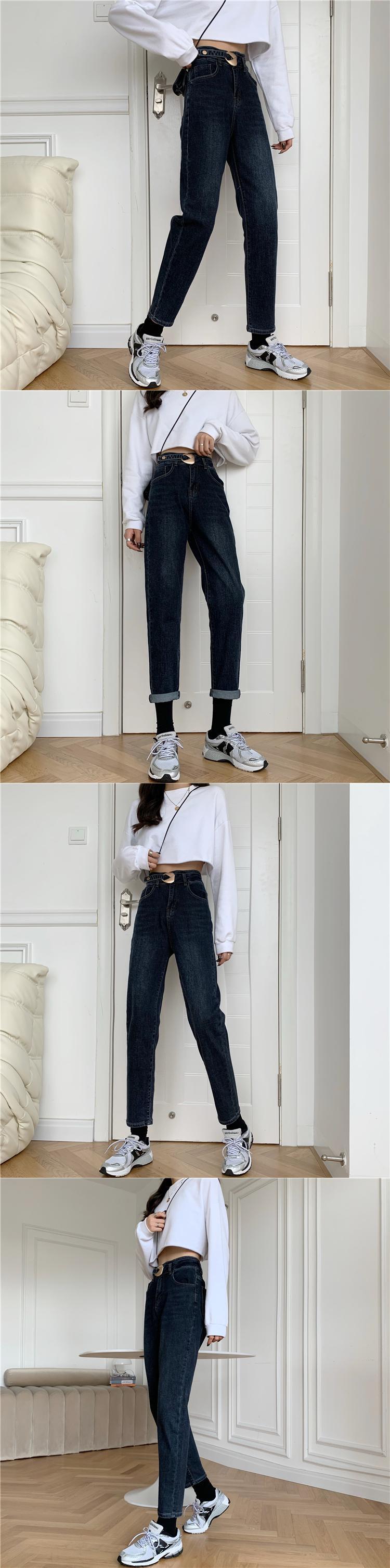 スタイルレッドハイウェストウェストバックルスタンダードジーンズ レディース レトロ YY-ファッション48852013561
