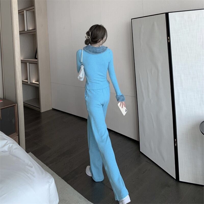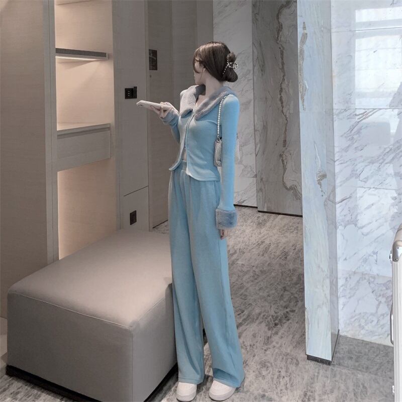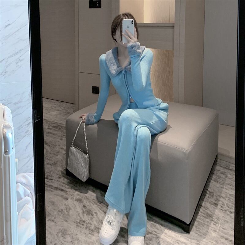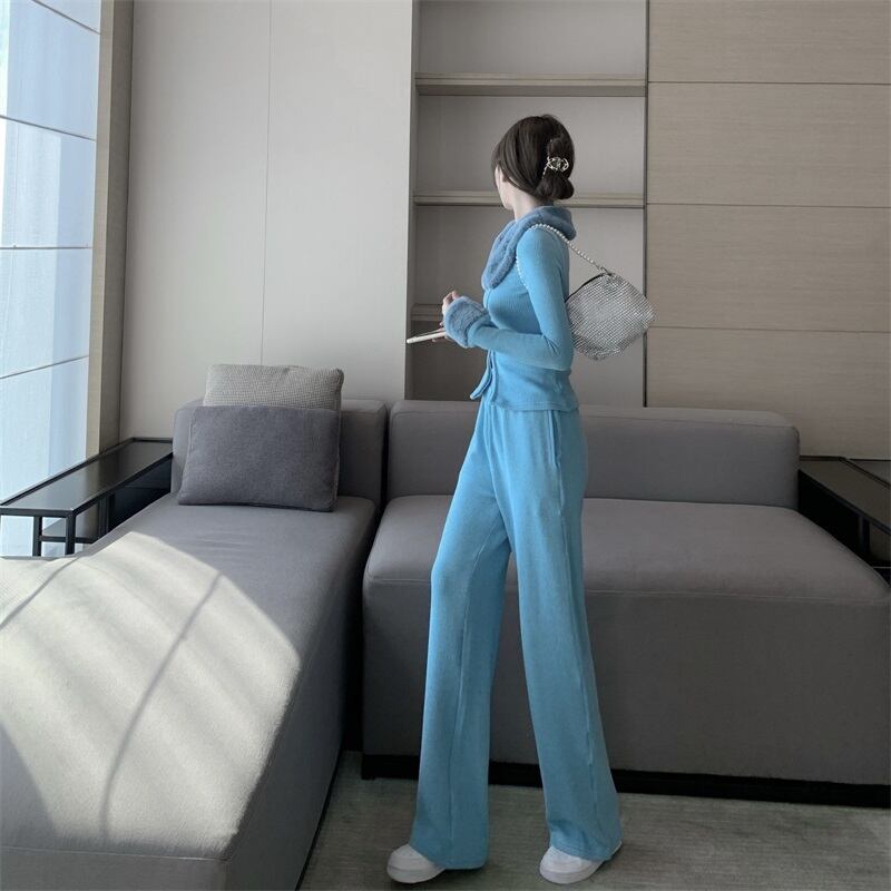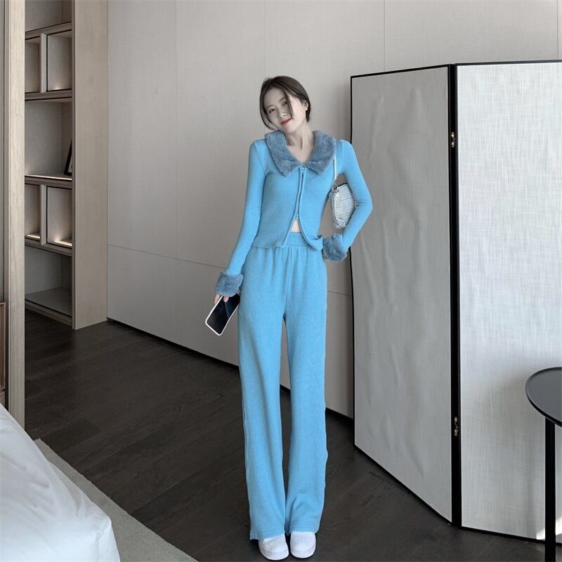 スプリングカラージッパーニットカーディガンハイウェストウェストカジュアルパンツ 春物 YY-ファッション57393143908