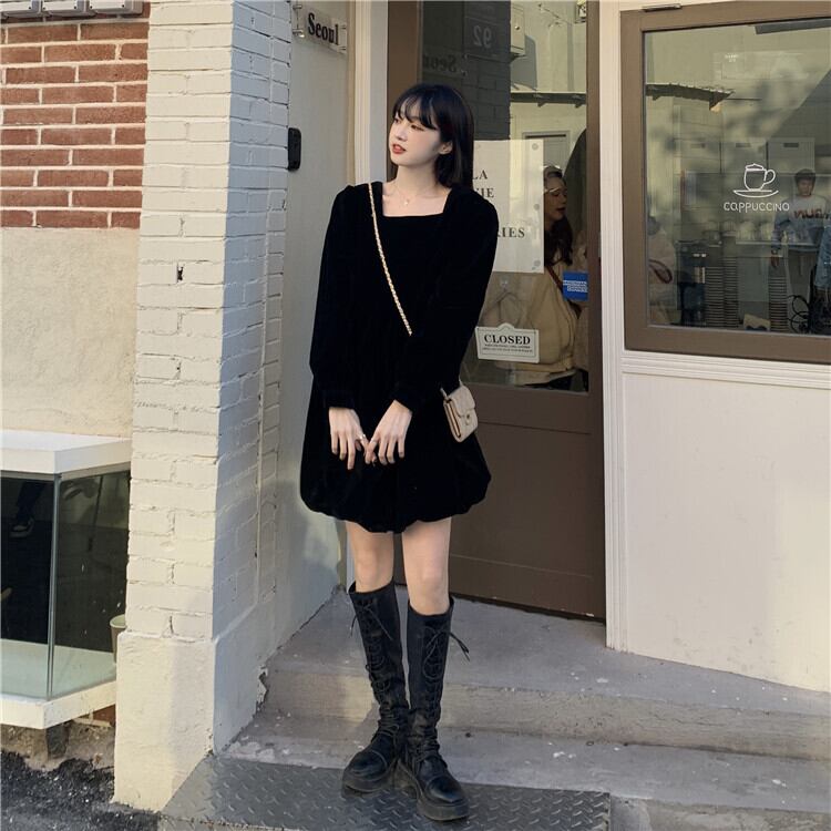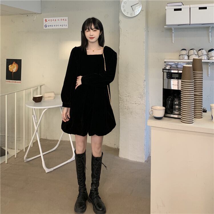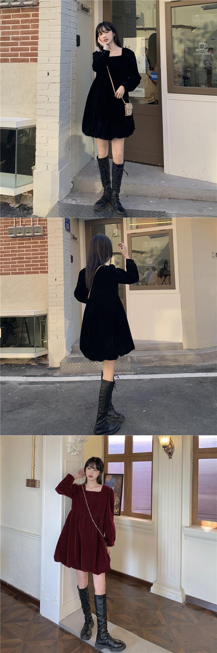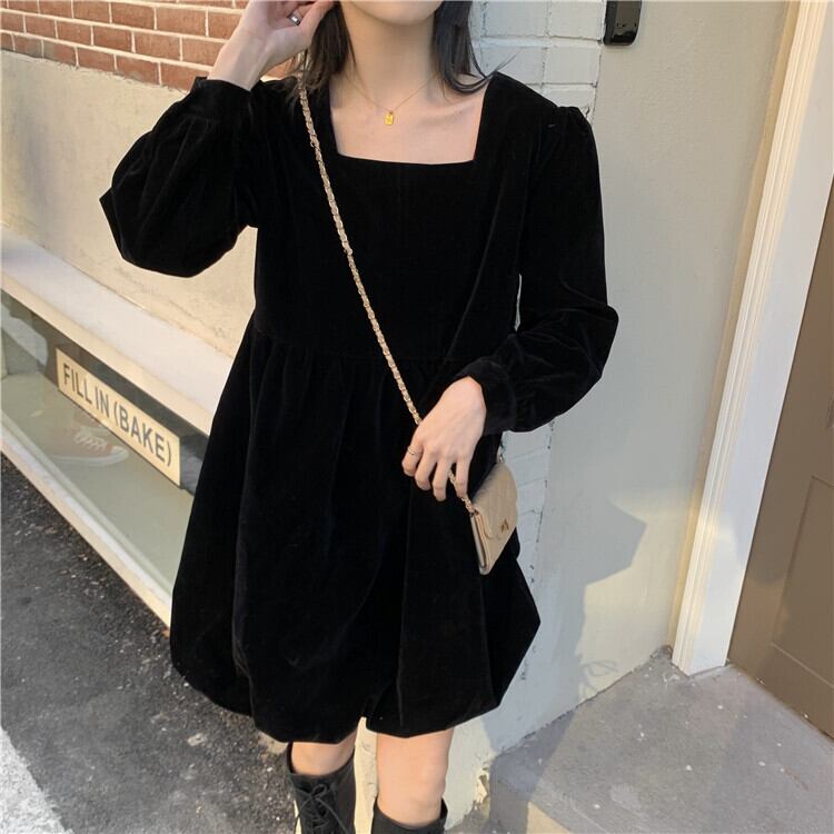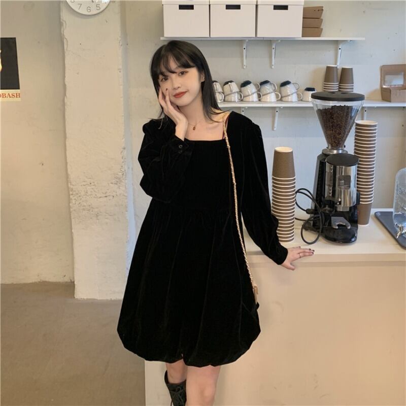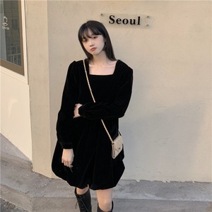 ベルベットドレス レディーススプリングスタンダードルーズレッドスカート レトロ 春物 スクウェア YY-ファッション4390176565