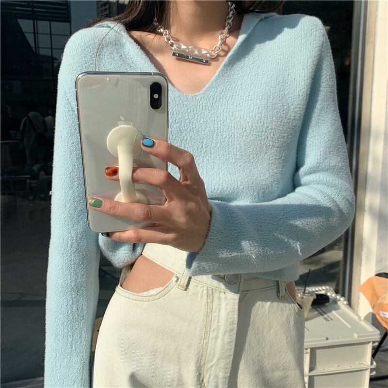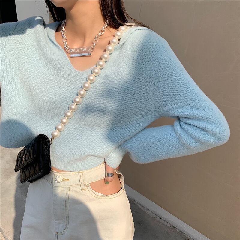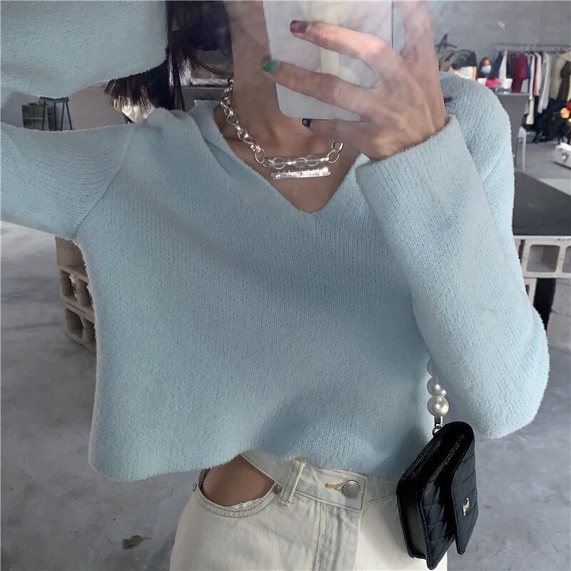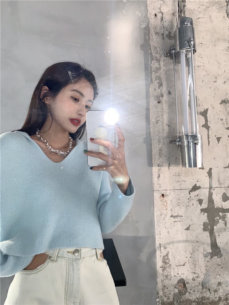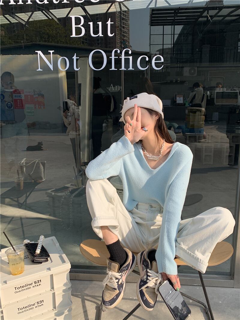 セーター ブルーVネックプルオーバー ショートニットジャケット ウィンター 冬物 YY-ファッション40622567620