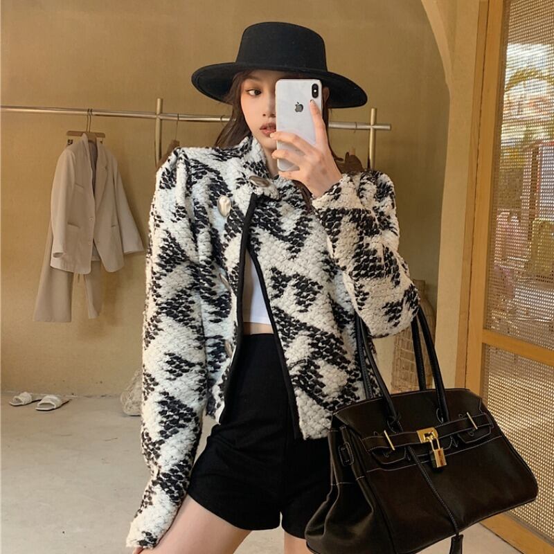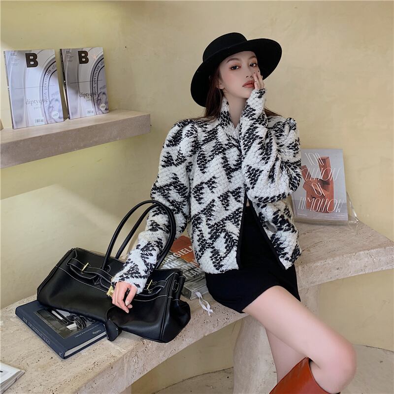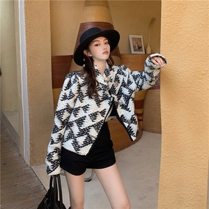 ショートコート オータムウィンタースタイルカラーツィードカーディガントップス コットン 秋物 冬物 YY-ファッション48171553541