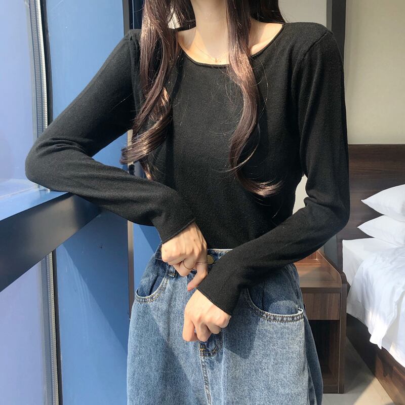 スプリングオータムスリムラウンドネックニットセーター 春物 秋物 Oネック YY-ファッション80519785009