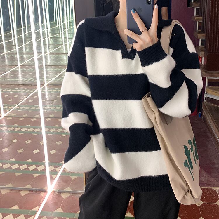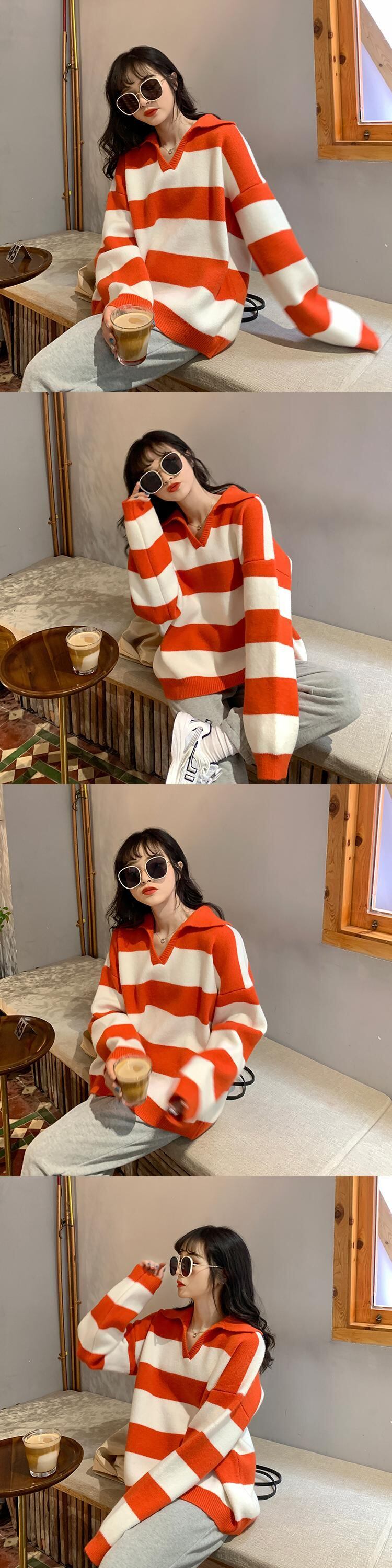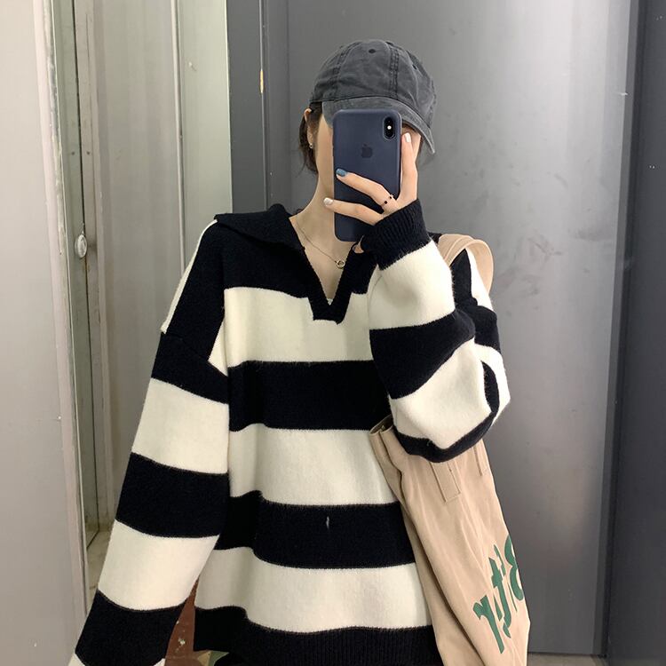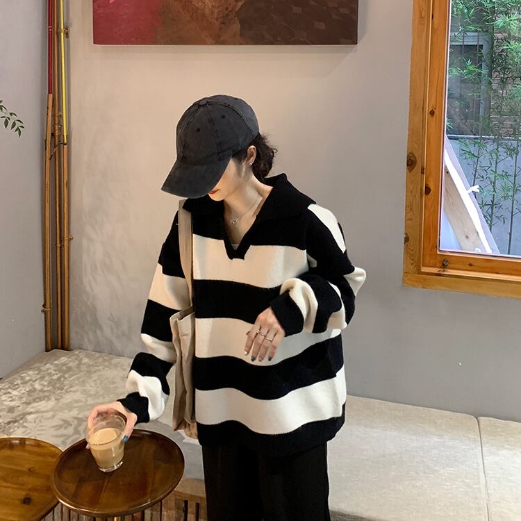 ストライプセーター レディースルーズスプリングオータム薄手ニットブラウス 春物 秋物 YY-ファッション87252957038