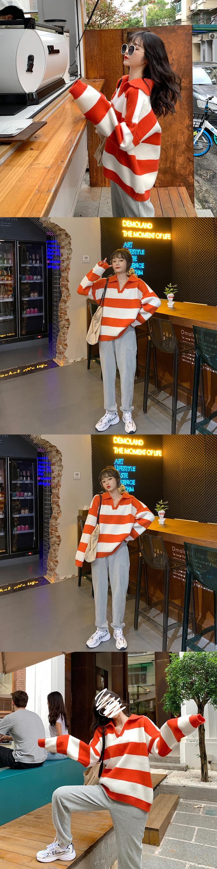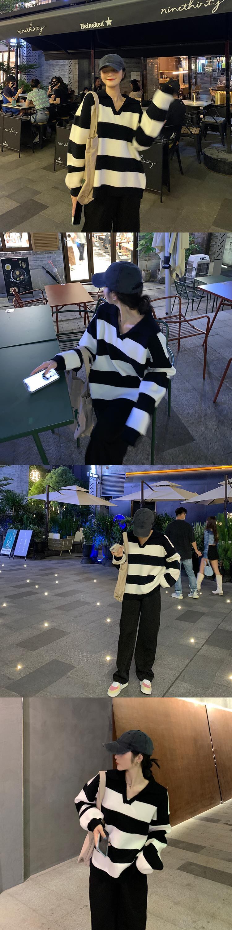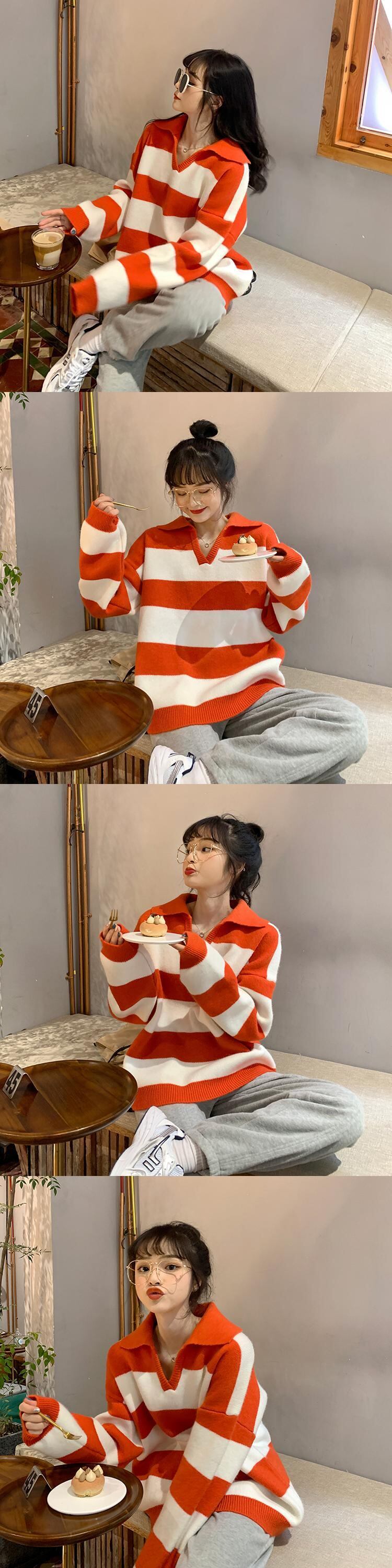 ストライプセーター レディースルーズスプリングオータム薄手ニットブラウス 春物 秋物 YY-ファッション87252957038
