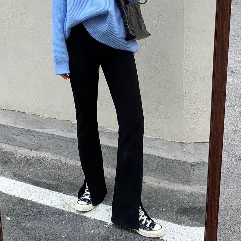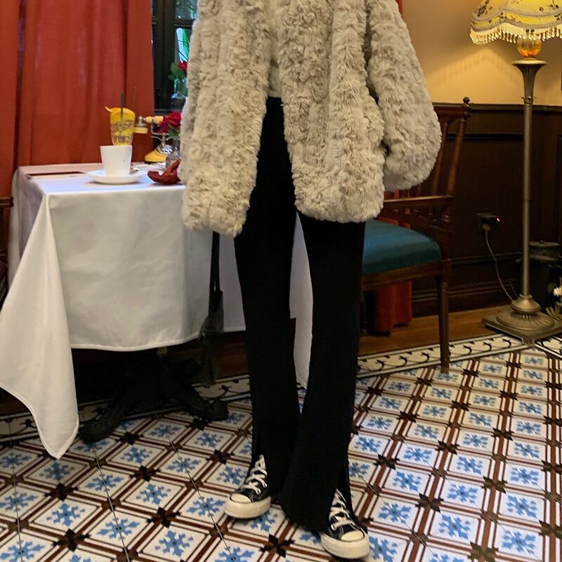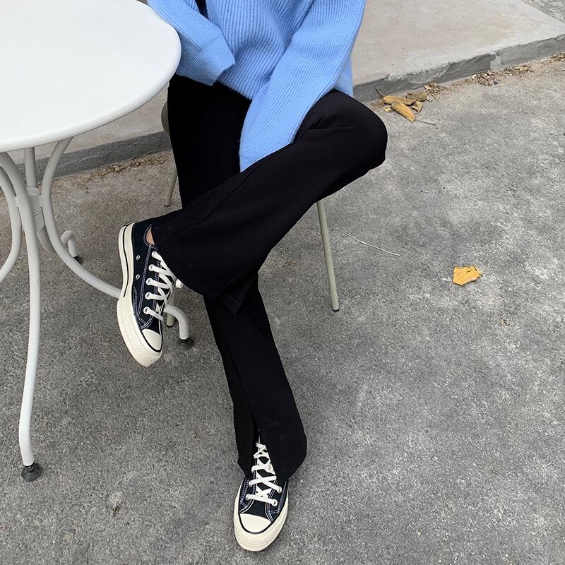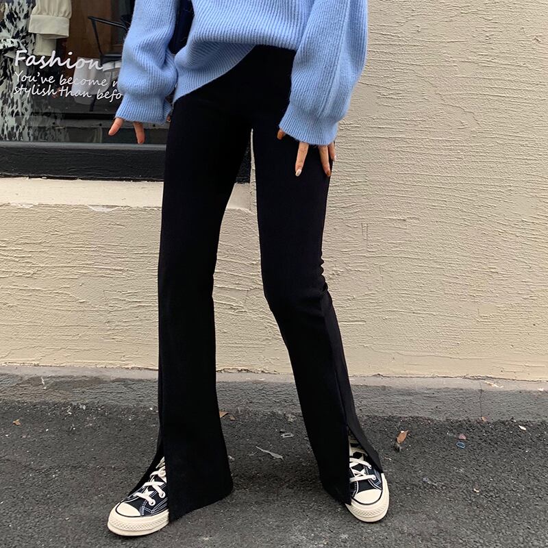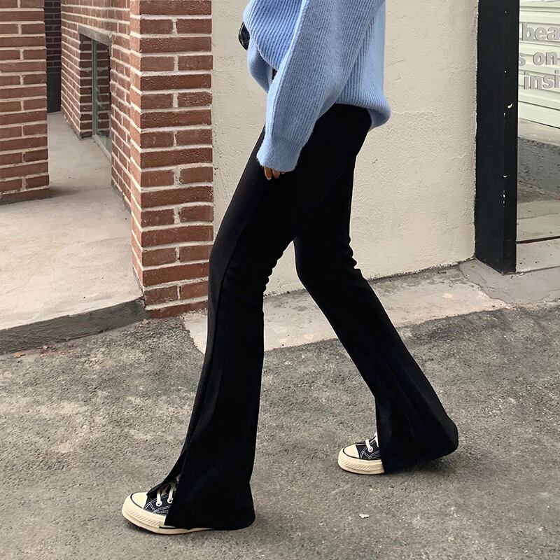 パンツ ハイウェスト薄手オータムウィンターベルベットブラックカジュアル レッド 秋物 冬物 YY-ファッション82908584007