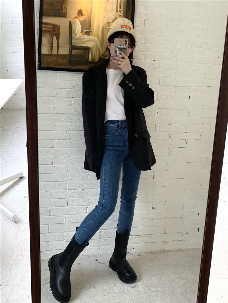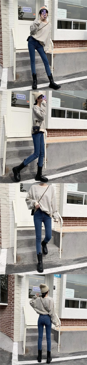 オータムウィンターパンツ ハイウェストジーンズ スリム 秋物 冬物 YY-ファッション78987291804