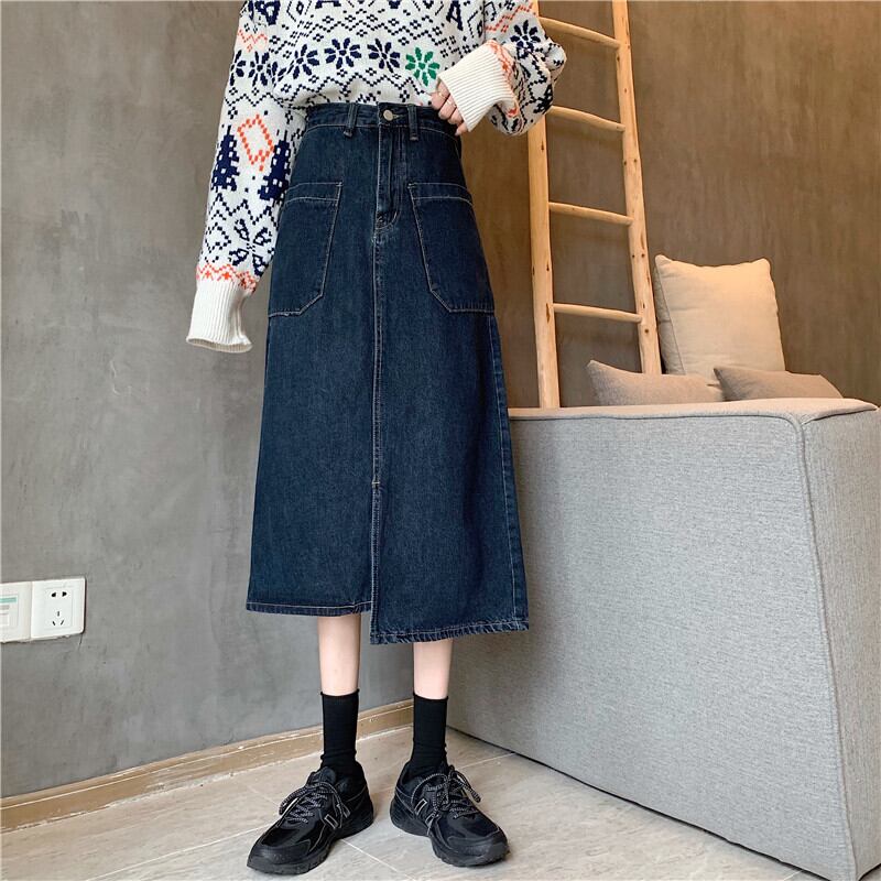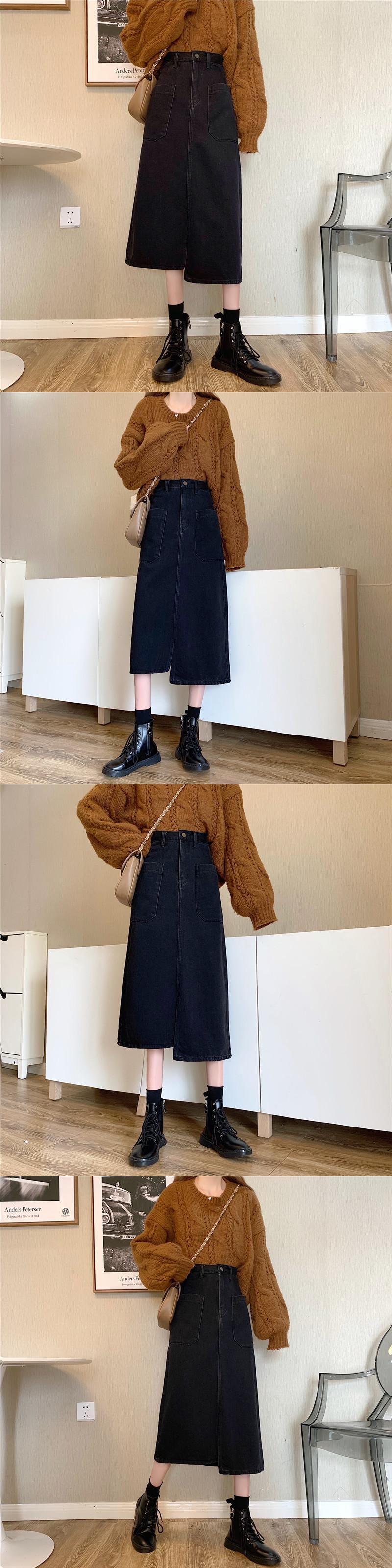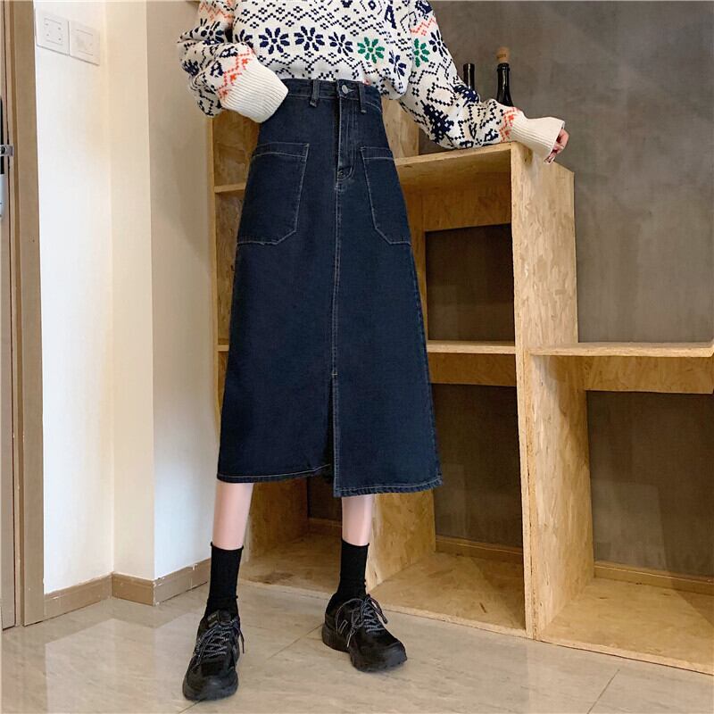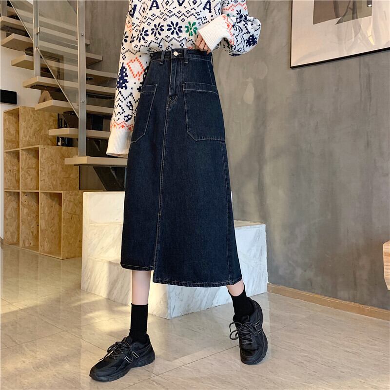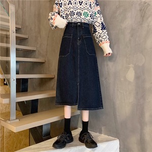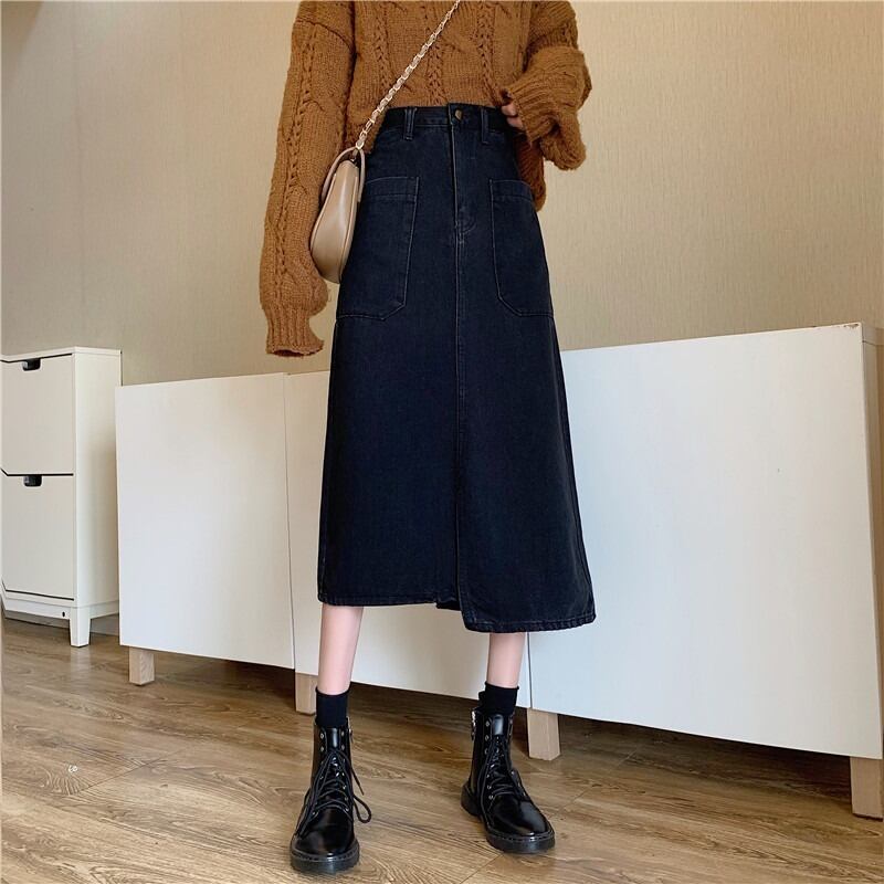 スプリングオータムブラックスカート レディース薄手ハイウェストウェストAラインスタンダード レトロ 春物 秋物 YY-ファッション77931148287