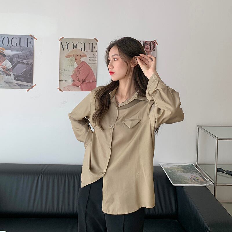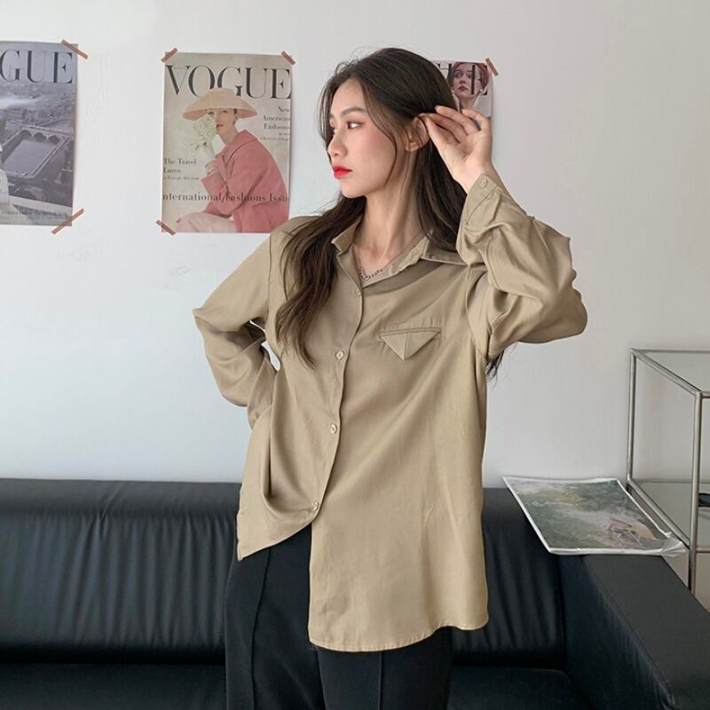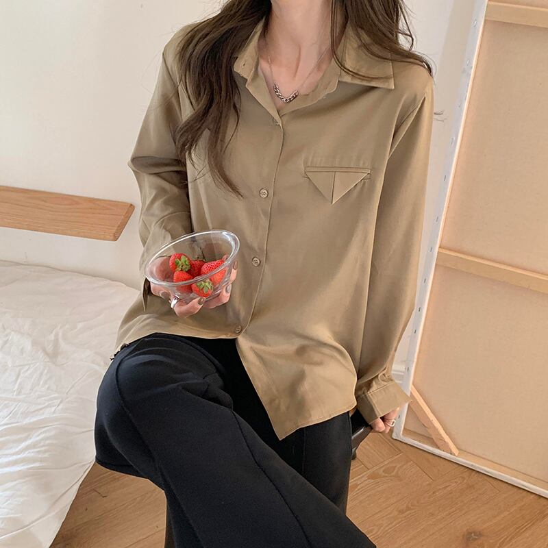 スプリングルーズシャツ ソリッド カラートップス ロング 春物 ソリッドカラー YY-ファッション73741821878
