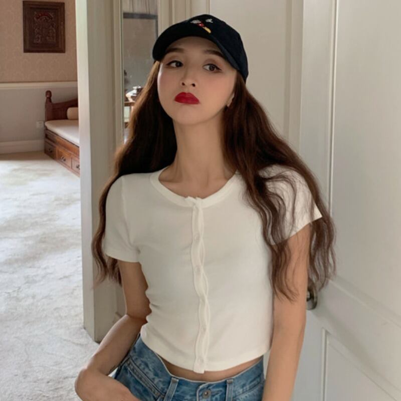 Tシャツ スリムショートホワイトトップス スプリングサマースタイル 春物 夏物 YY-ファッション34754573783