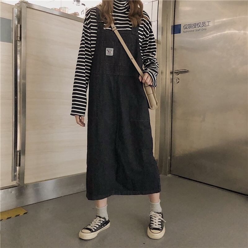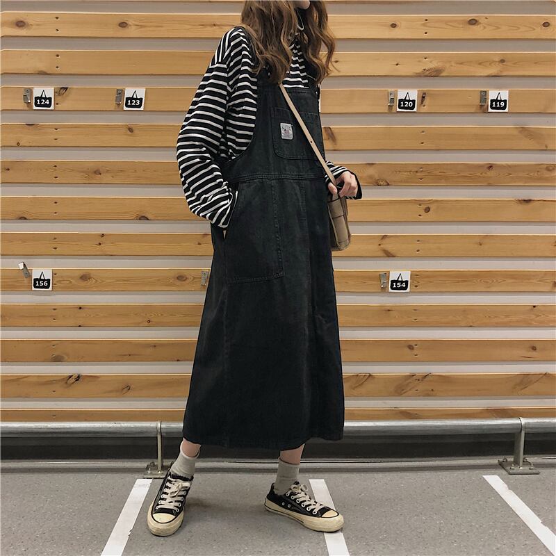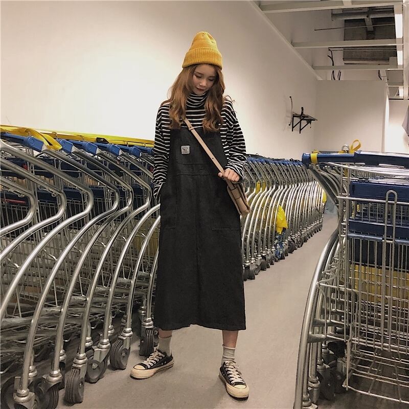 スプリングオータムスタンダードスタイルポケットルーズノースリーブドレス ミディスカート レトロ 春物 秋物 YY-ファッション9103705091