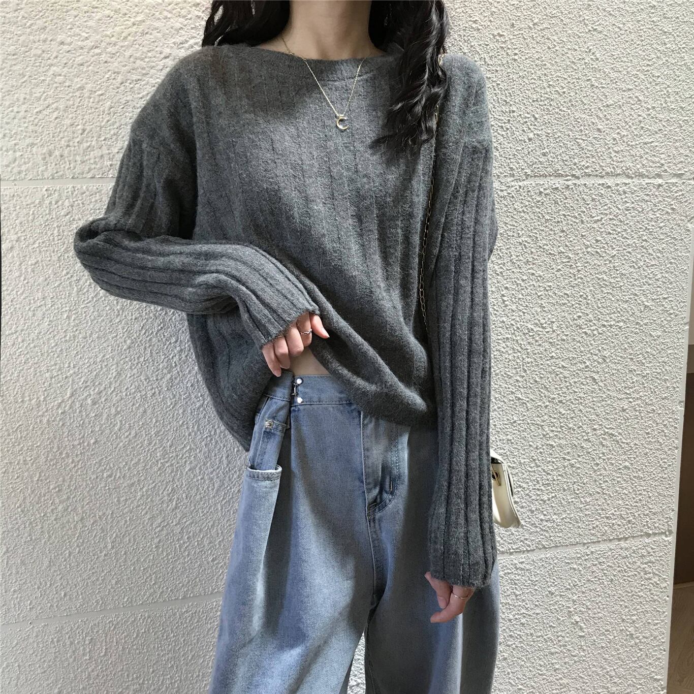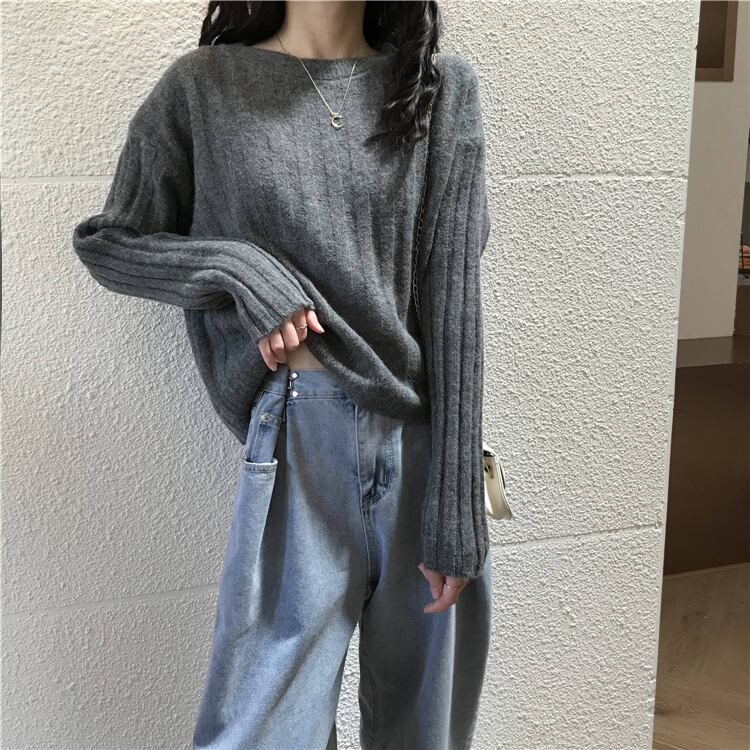 スタイルグレーセーター レディースルーズ長袖スリーブ ロング オータム 秋物 ウィンター 冬物 YY-ファッション41758852124