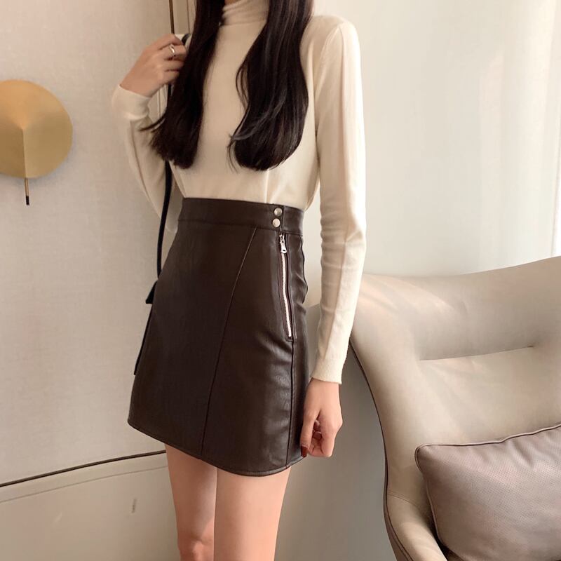 スカート オータムハイウェストウェストレザーショート 秋物 YY-ファッション24992855544
