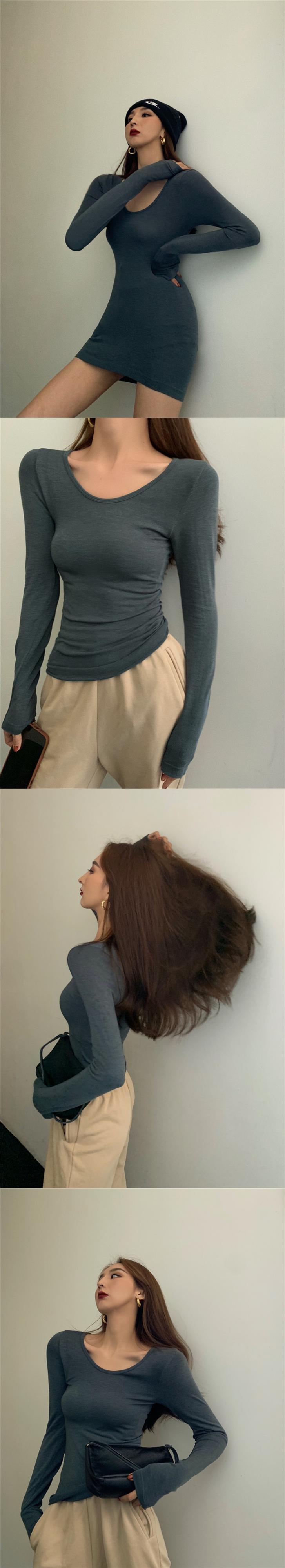シャツ スプリングカラー薄手オータムウィンターTシャツ トップス ロング 春物 秋物 冬物 YY-ファッション86295119035