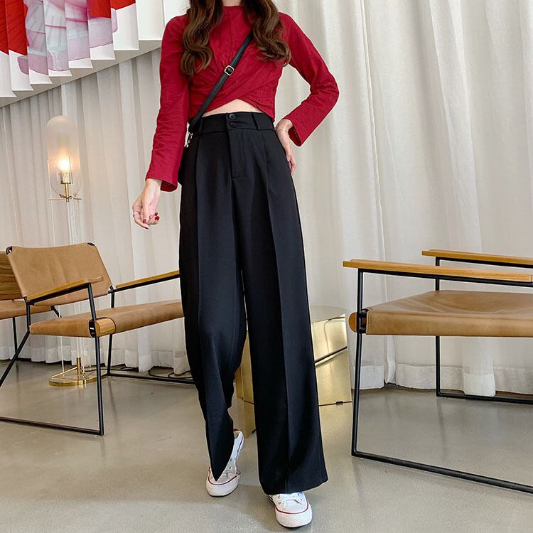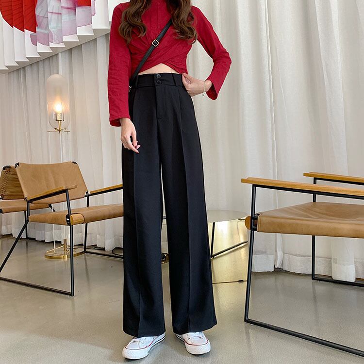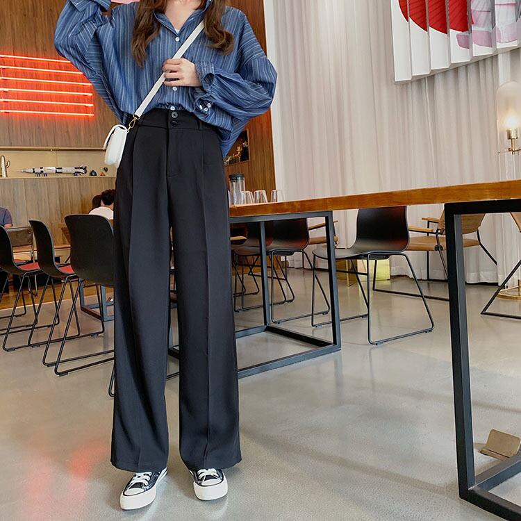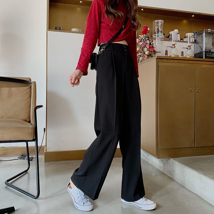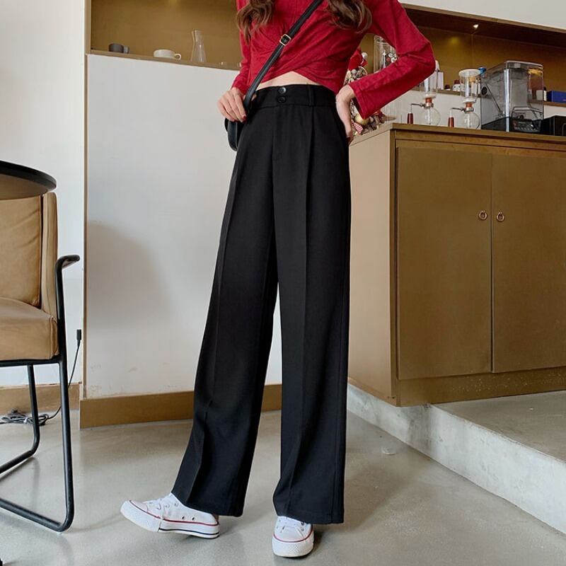 ブラックレディースウェストパンツ ルーズ薄手 エラスティック 伸縮 YY-ファッション46246484203
