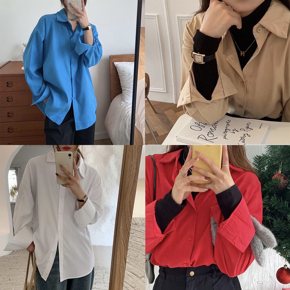 ブラウス ルーズシャツ オータムウィンターブルージャケット ロング 秋物 冬物 YY-ファッション90091313755
