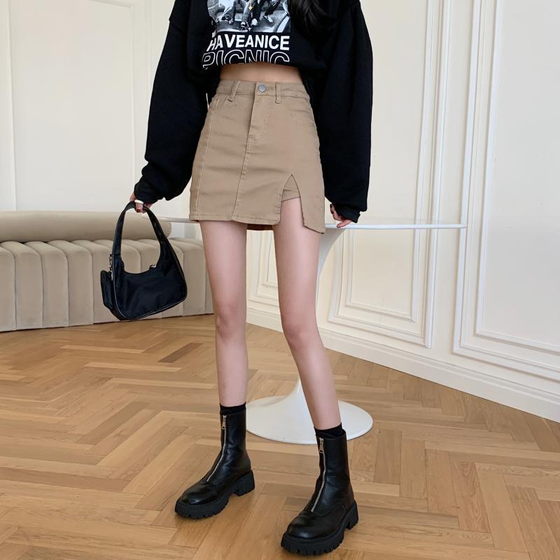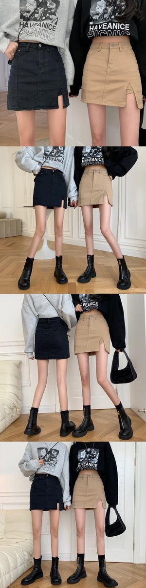 スプリングハイウェスト薄手サイドジーンズ スカート 春物 YY-ファッション3045251267
