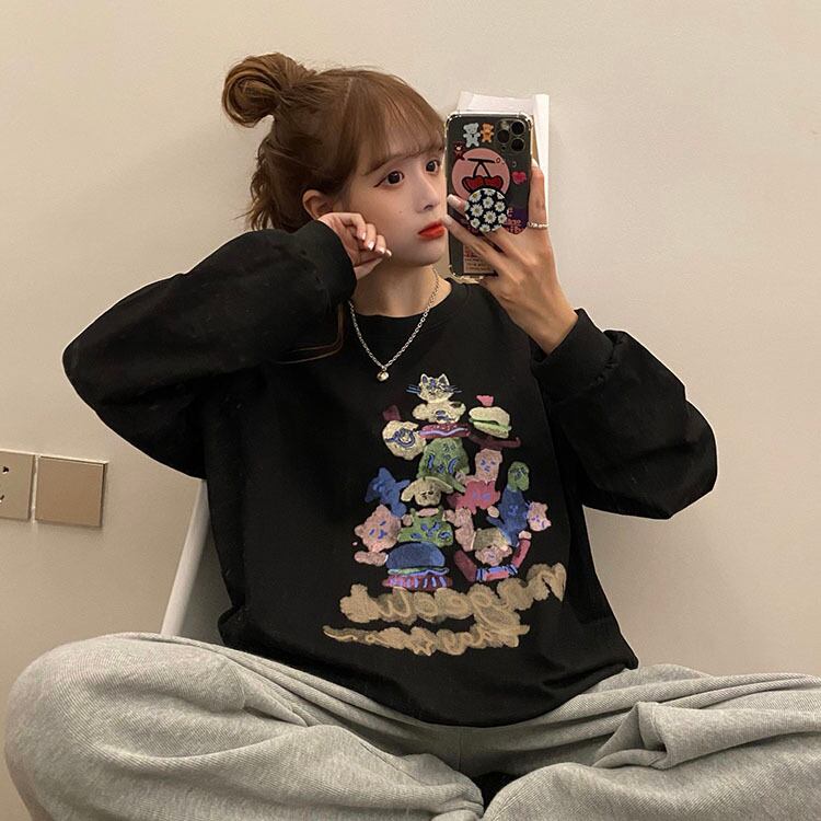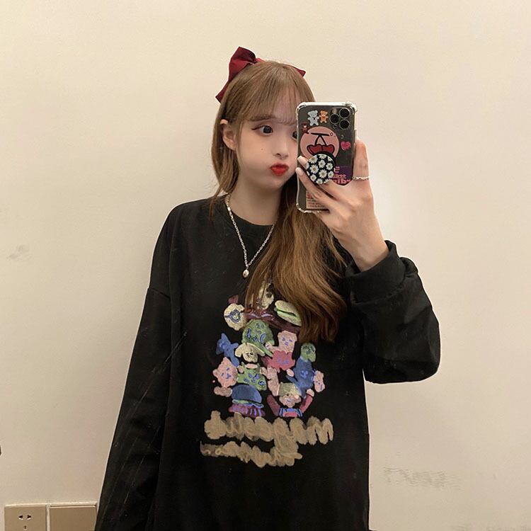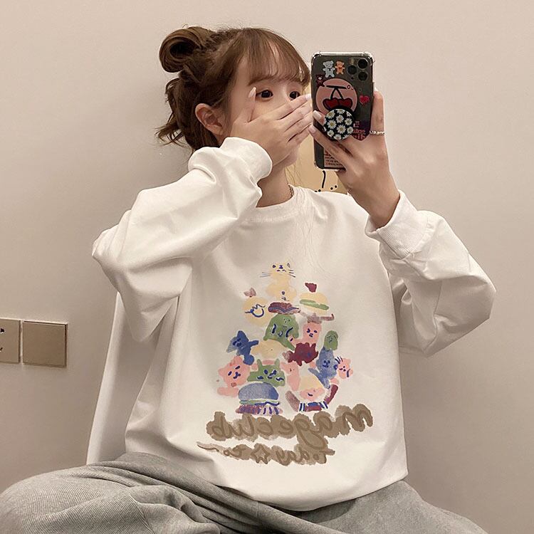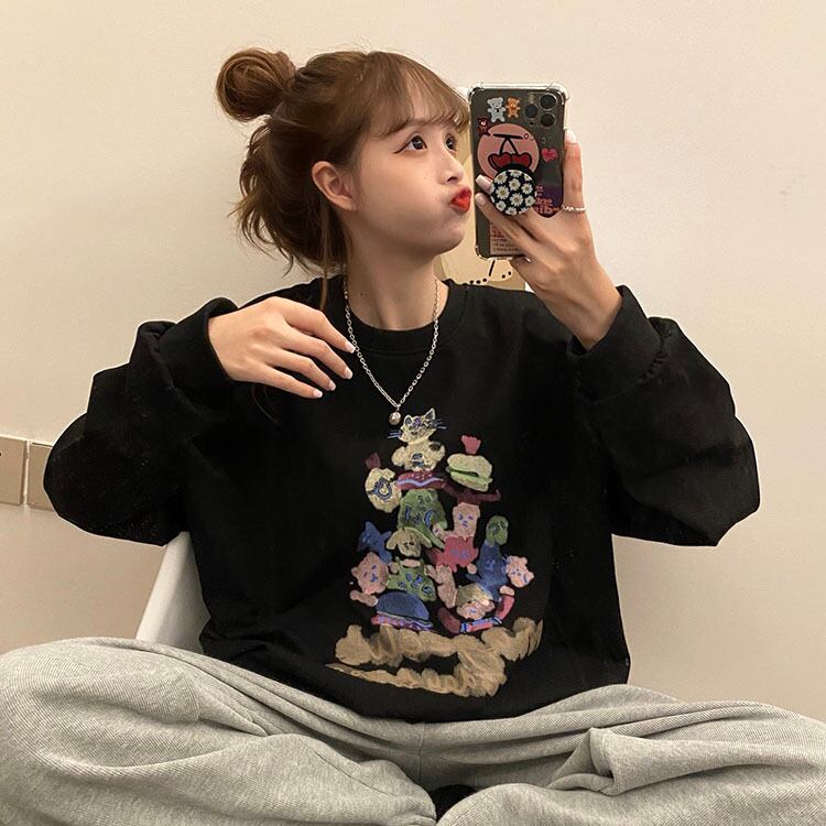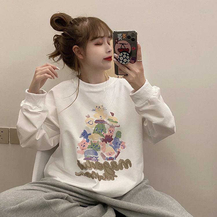 オータムウィンタープリントプルオーバー ラウンドネックルーズセーター コート ロング 秋物 冬物 Oネック YY-ファッション64571449059