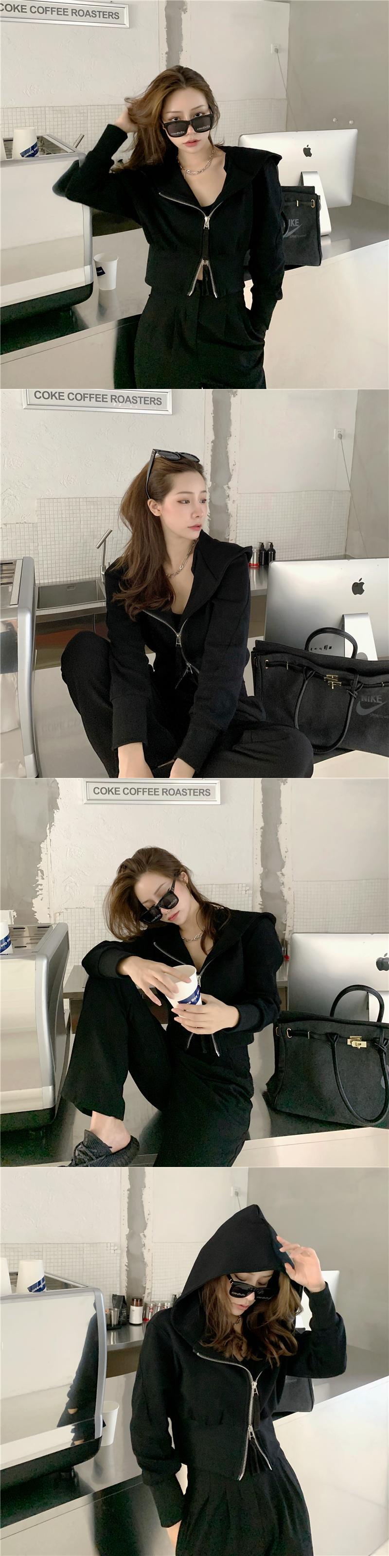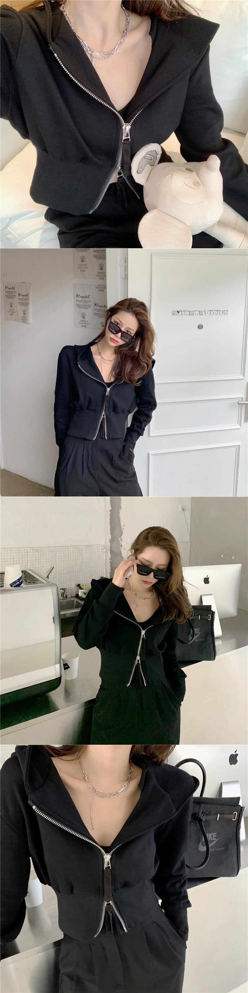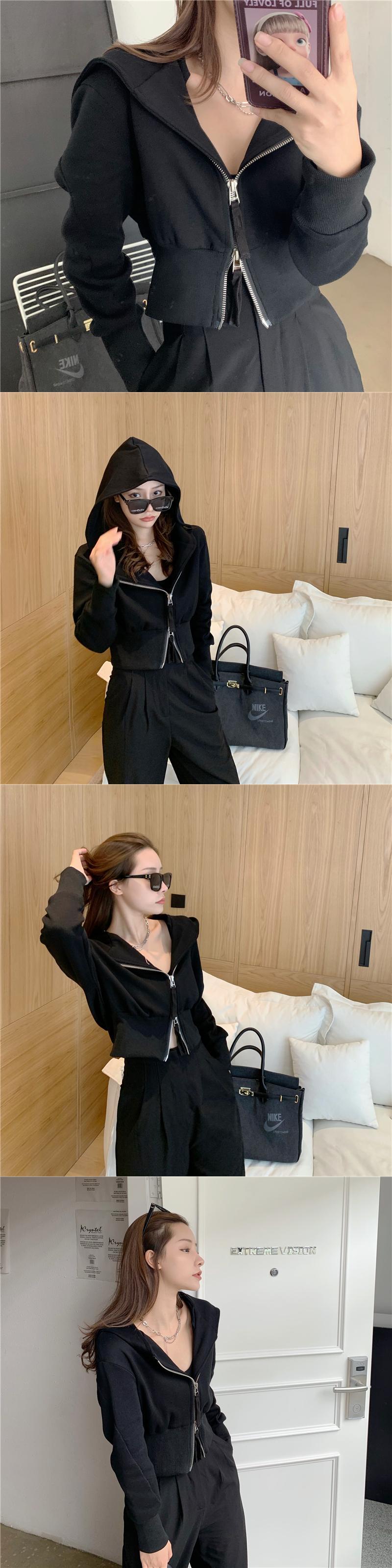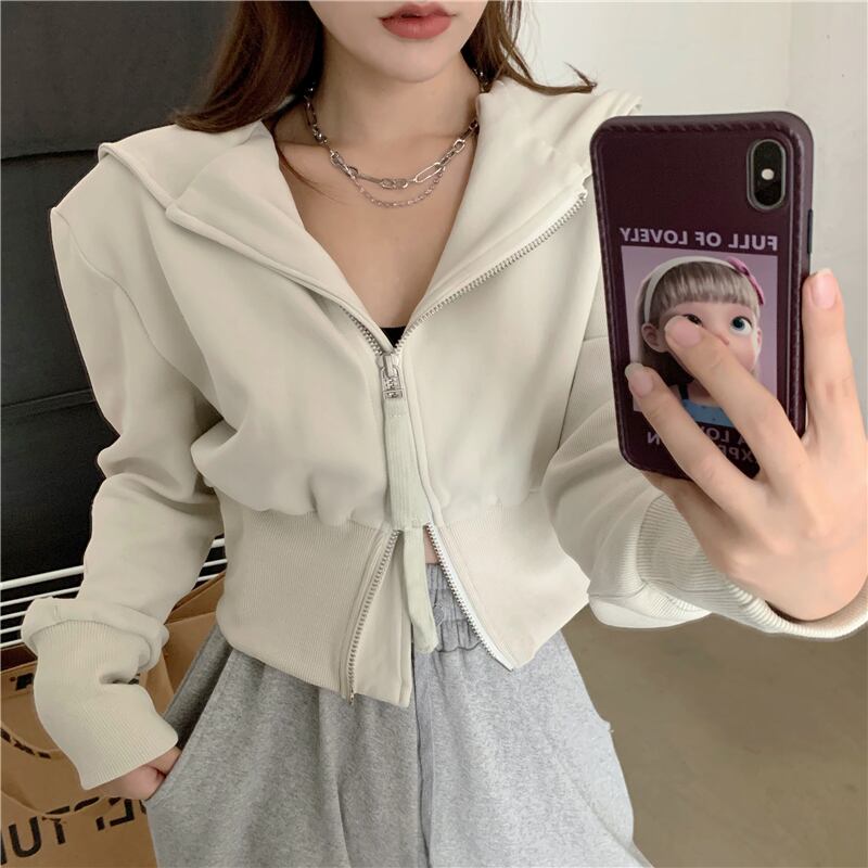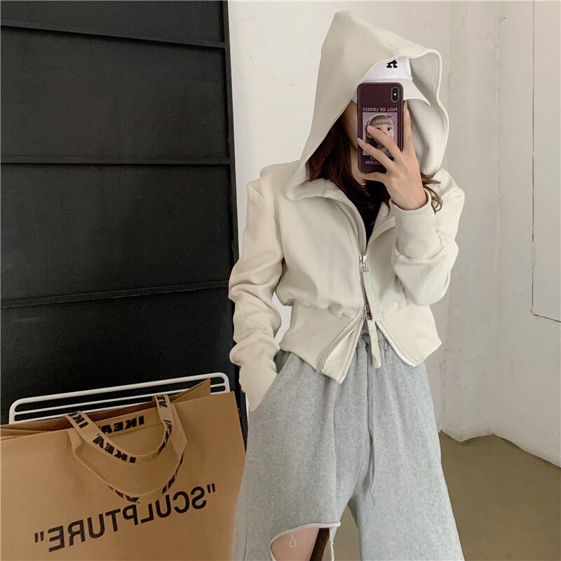 ショートセーター ジャケット レディーススプリングオータムダブルジッパースタイルフードトップス 春物 秋物 YY-ファッション81426562394