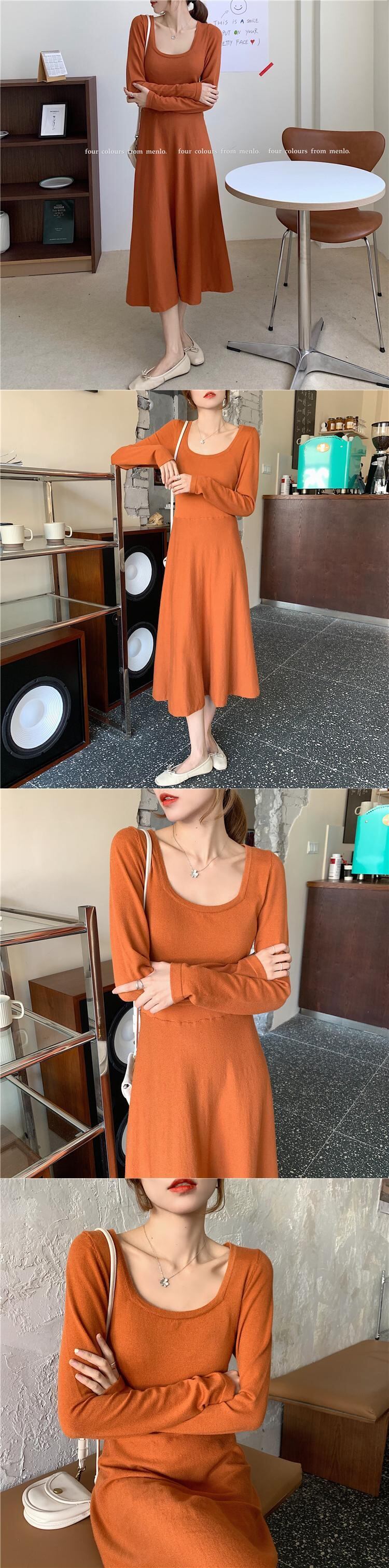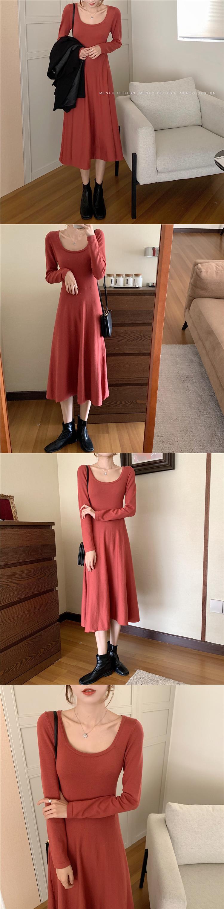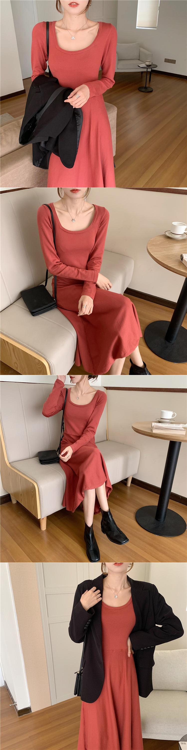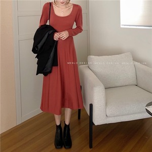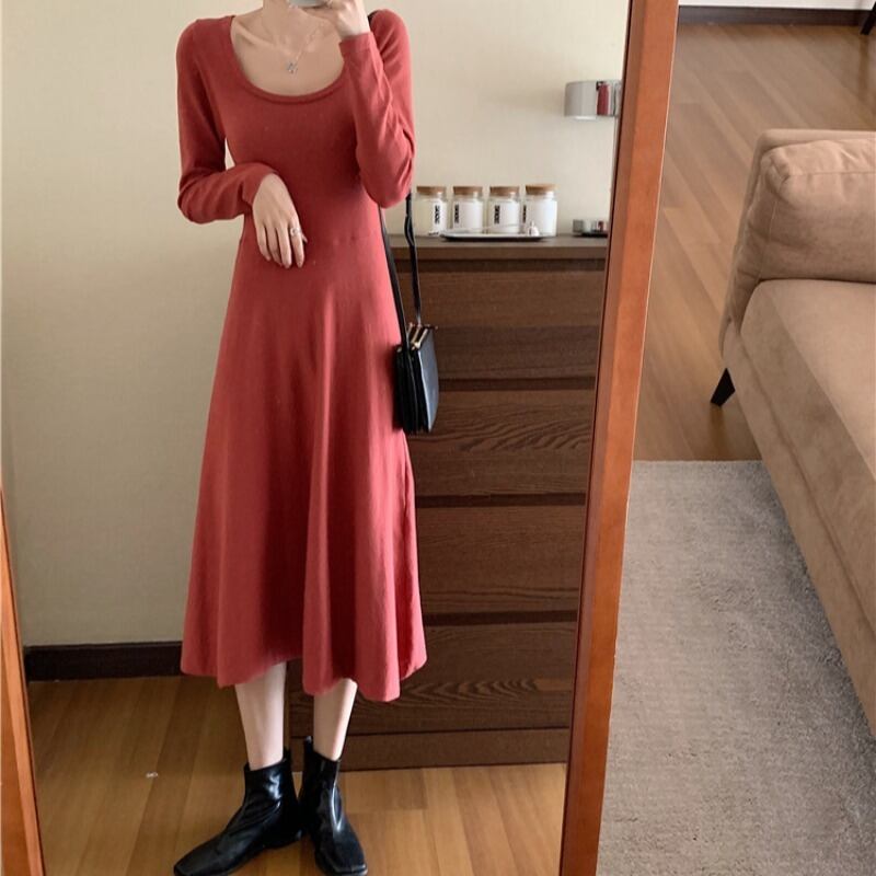 ニットドレス ウェスト長袖スリーブスカート スプリングレッドスリム ロング 春物 スクウェア YY-ファッション40889710796