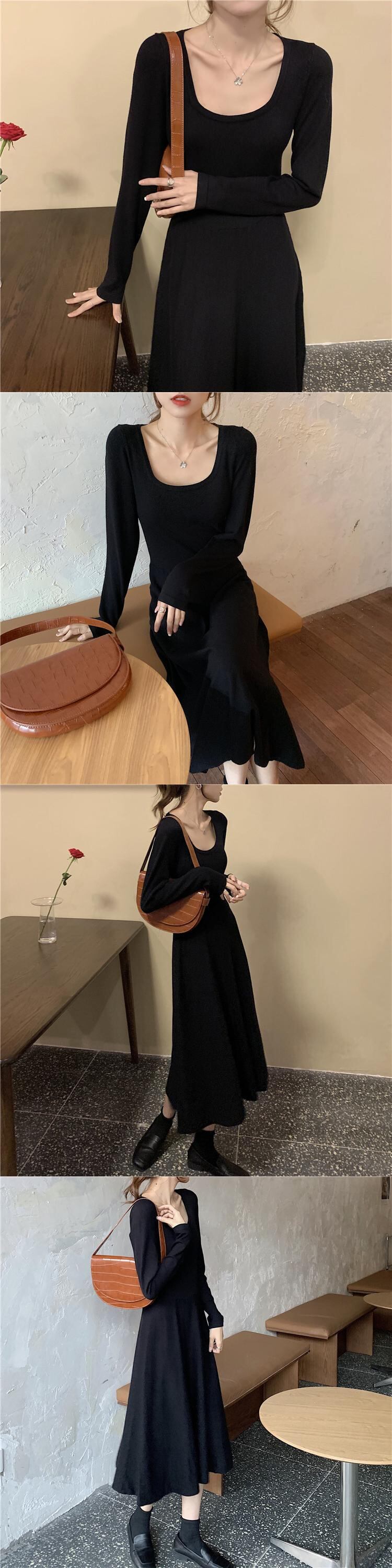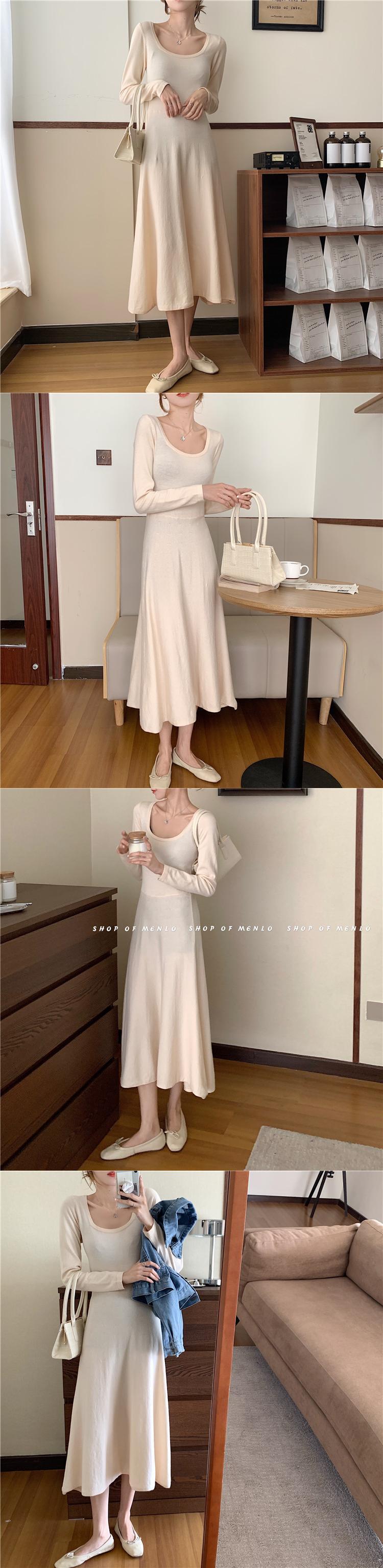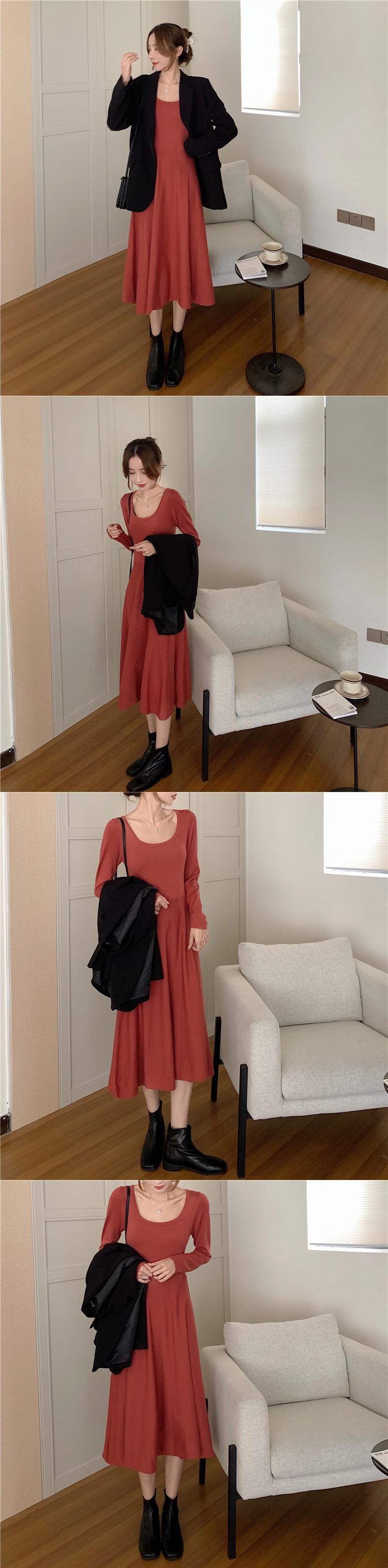 ニットドレス ウェスト長袖スリーブスカート スプリングレッドスリム ロング 春物 スクウェア YY-ファッション40889710796
