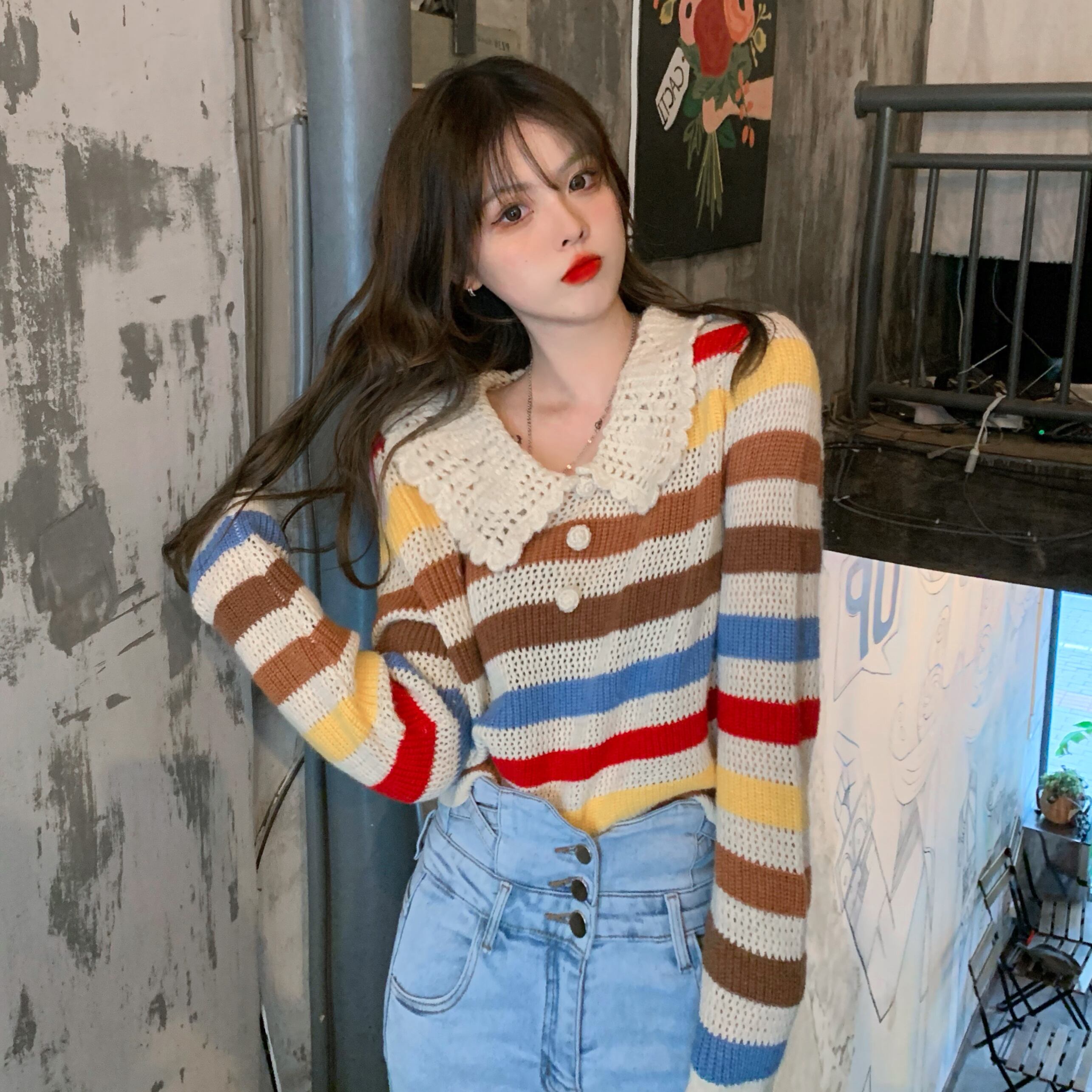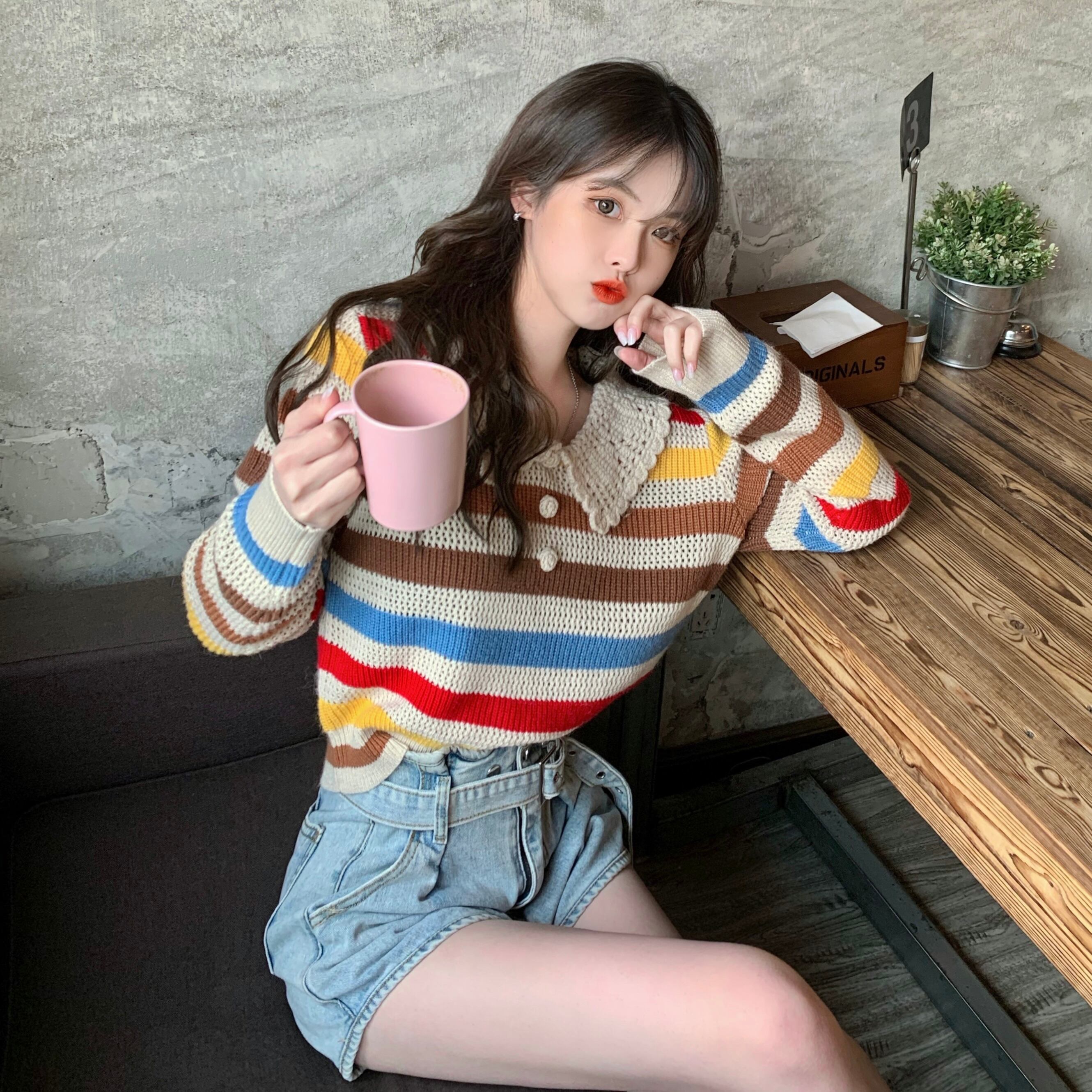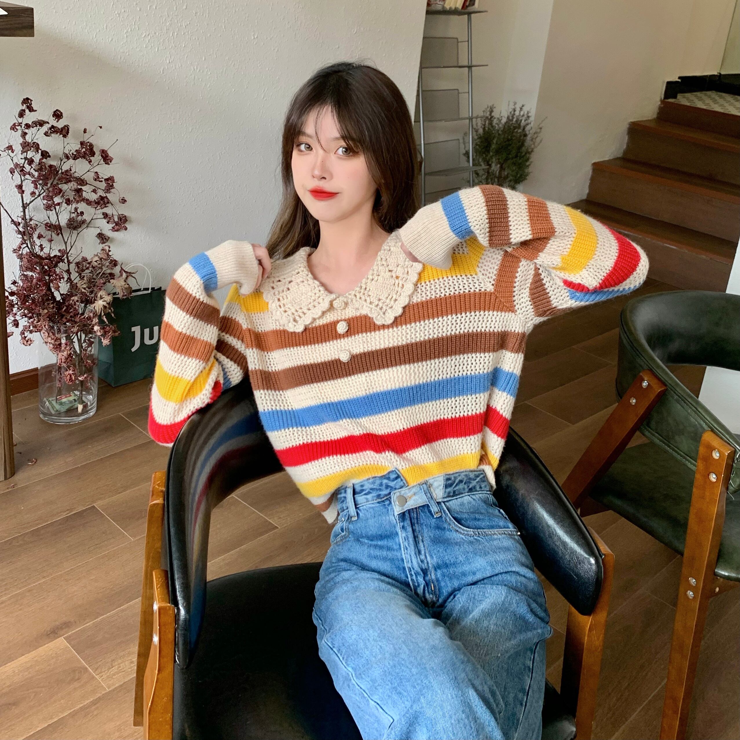 ストライプセーター ショートニットカラー YY-ファッション52572101359
