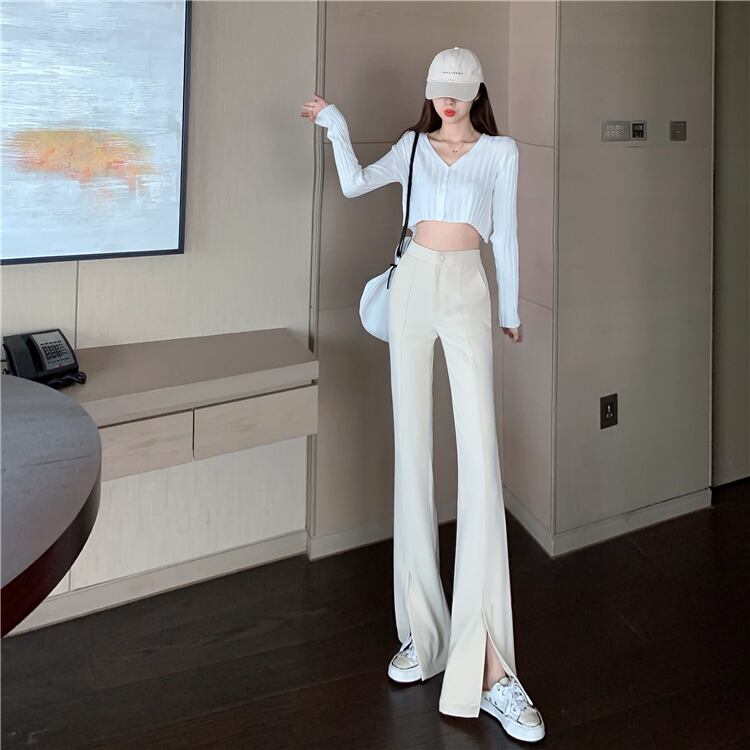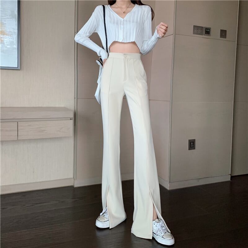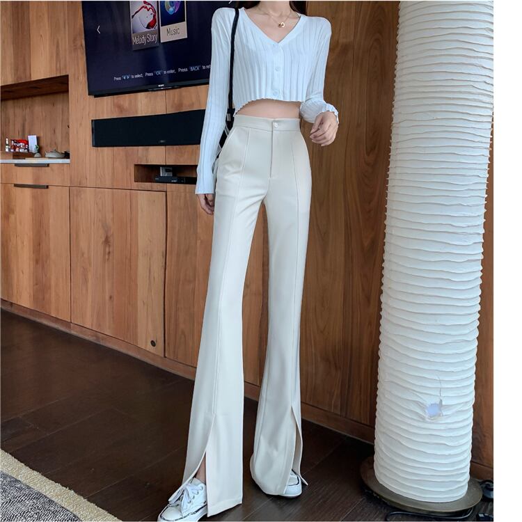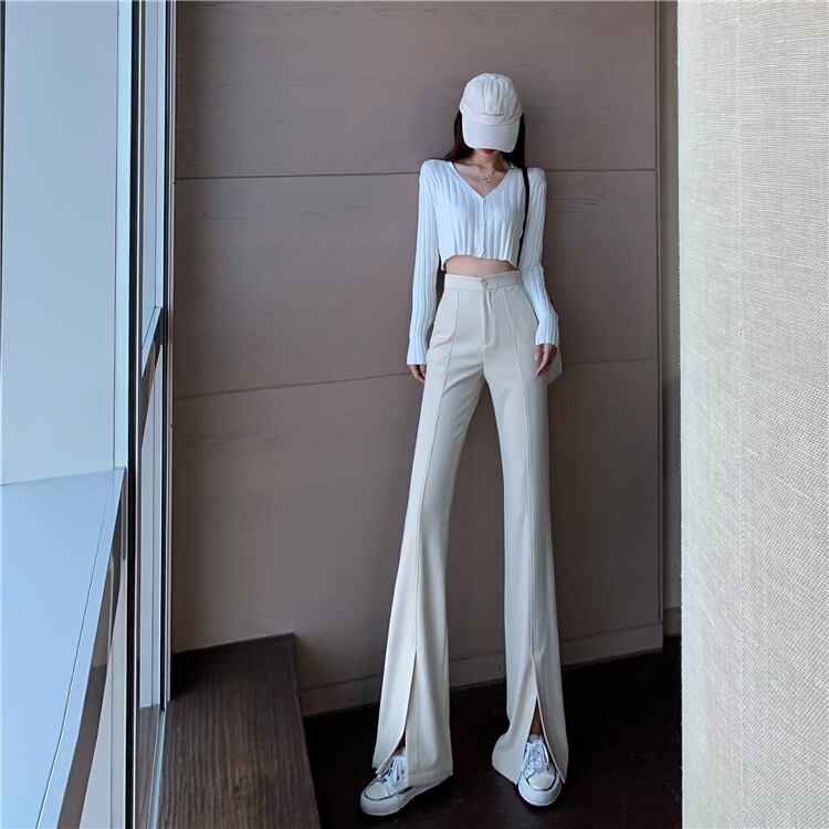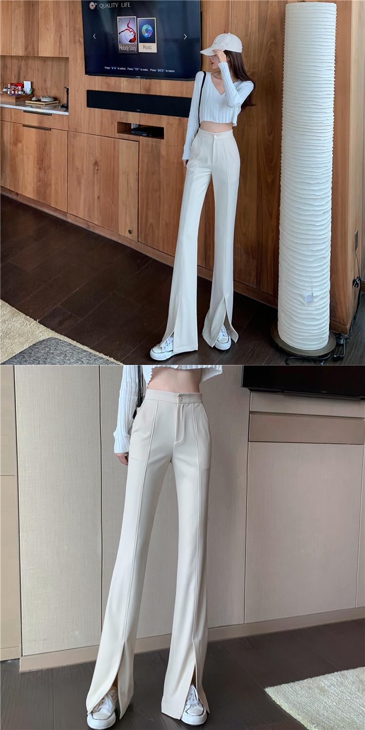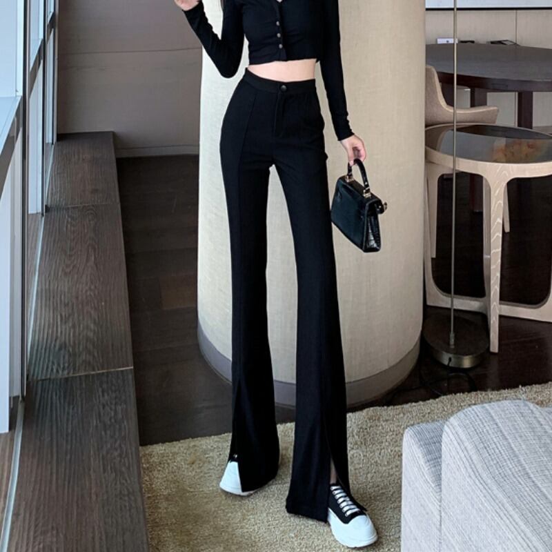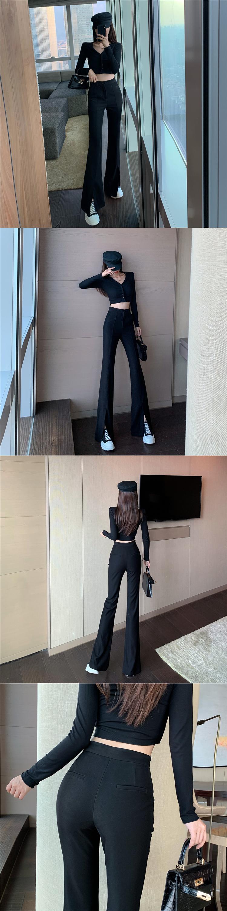 ウェストスリットパンツ ブラックカジュアル レッド YY-ファッション59158593142