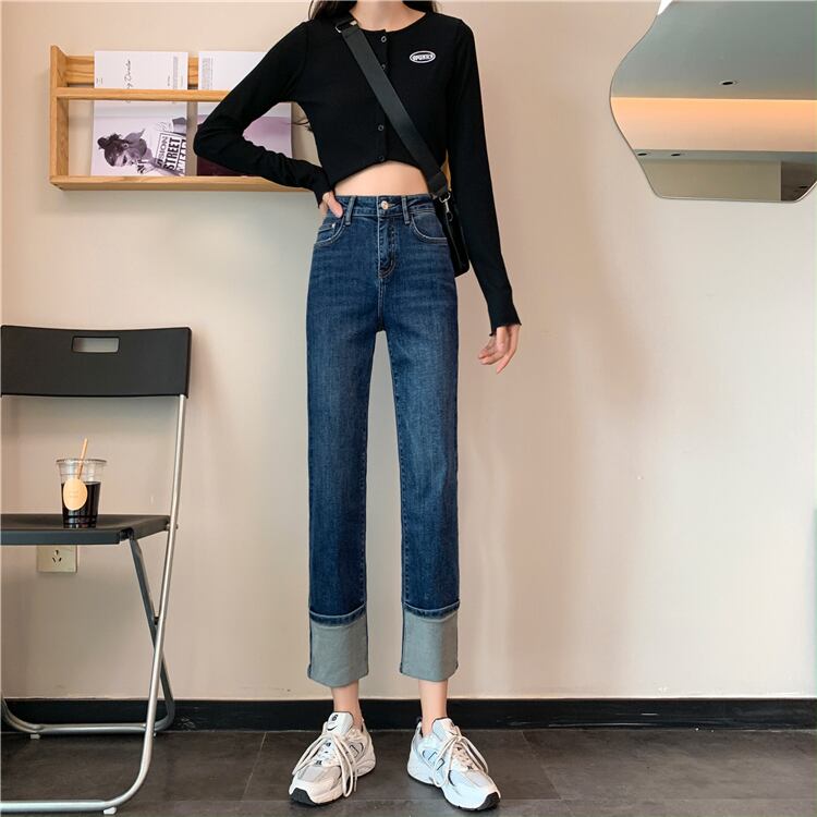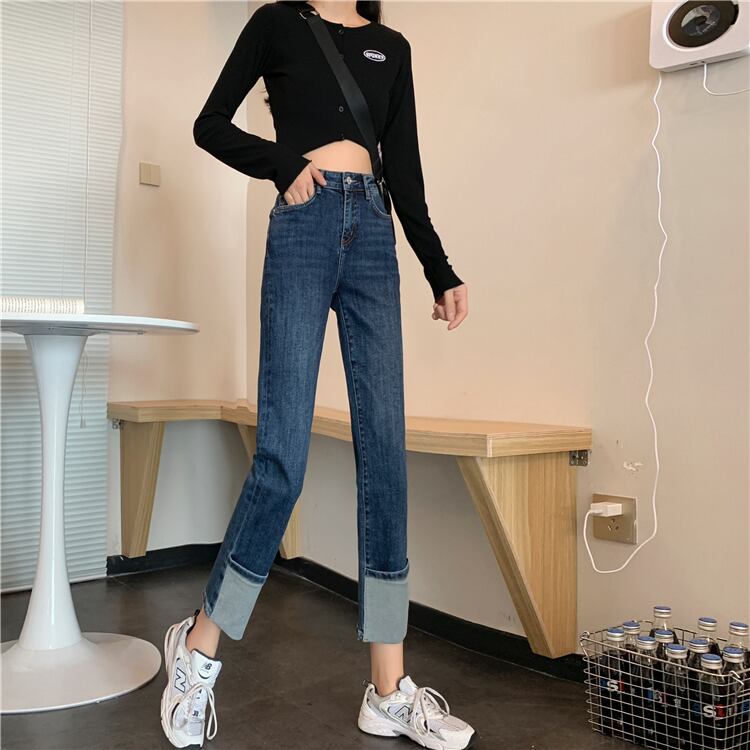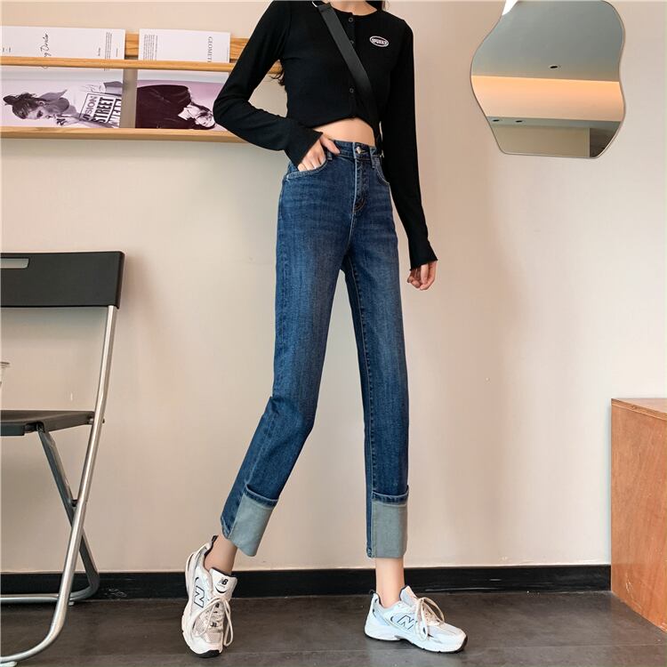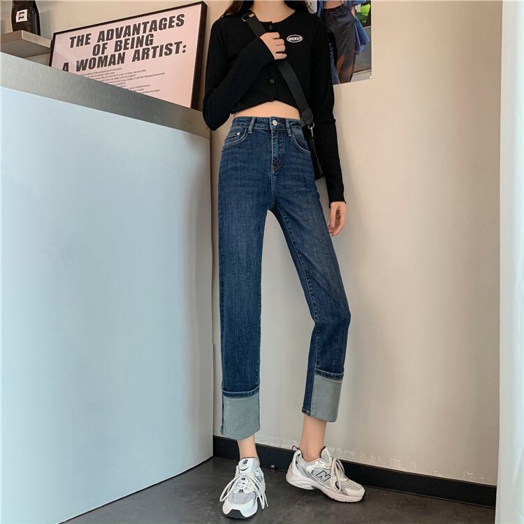 ハイウェストジーンズ ルーズスタンダード薄手 レトロ YY-ファッション75950039421