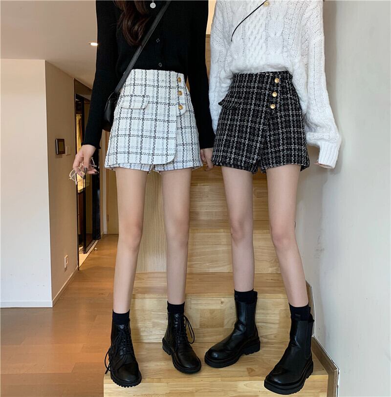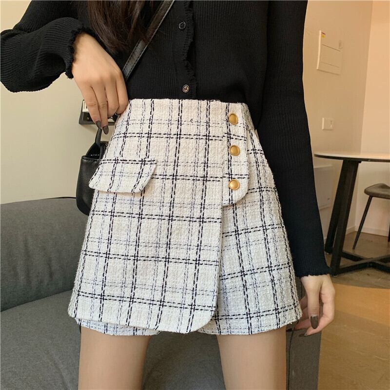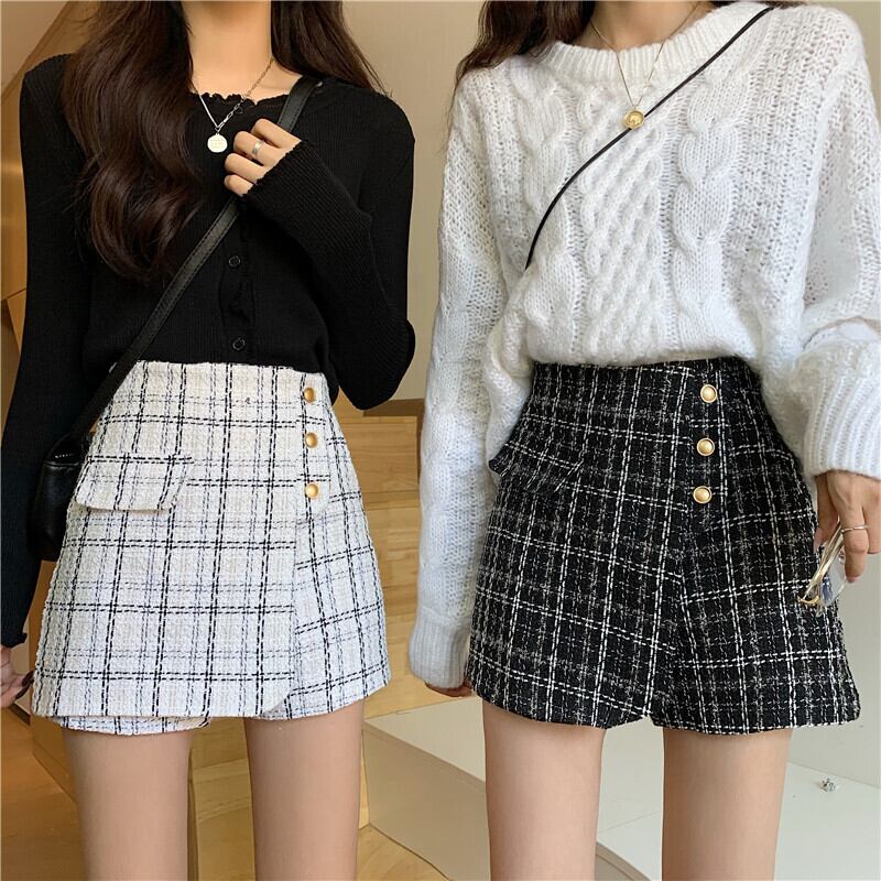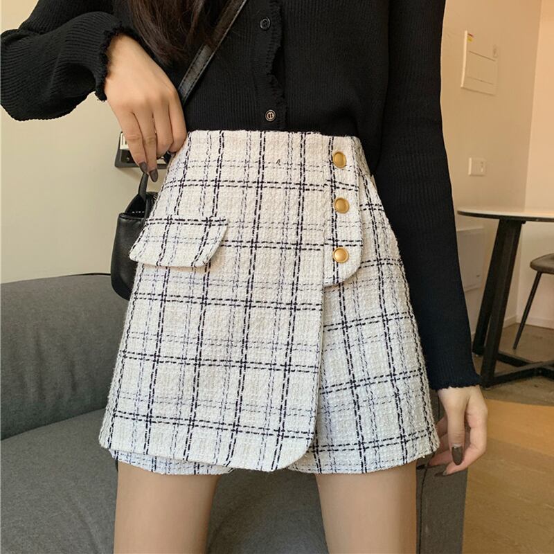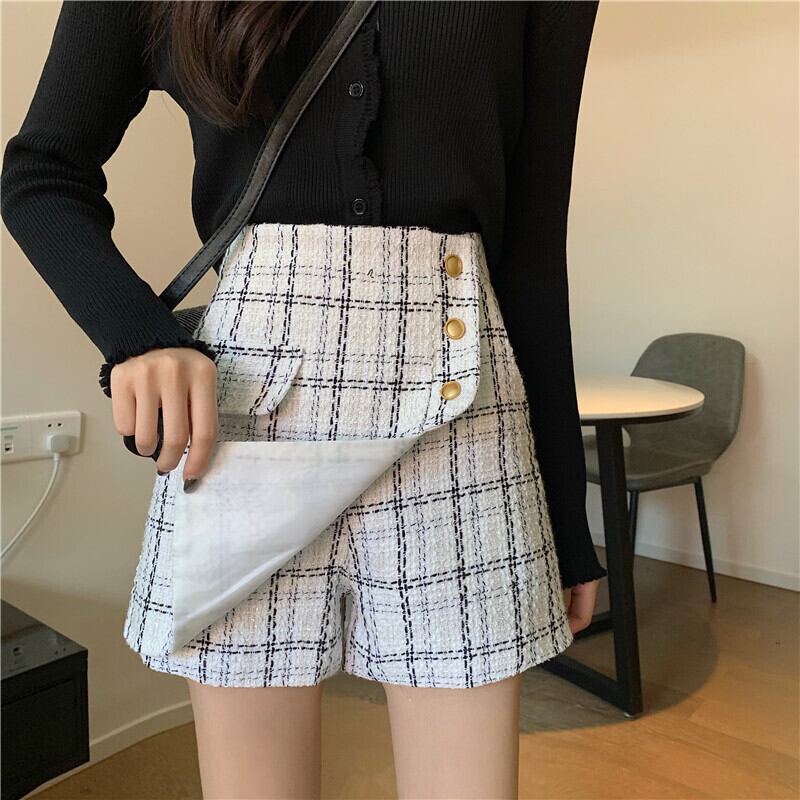 スタンダードツィード格子柄パンツ オータムウィンタースタイルハイウェストウェストショーツ スカート 薄手カジュアル レトロ 秋物 冬物 ブルマー YY-ファッション98626598522