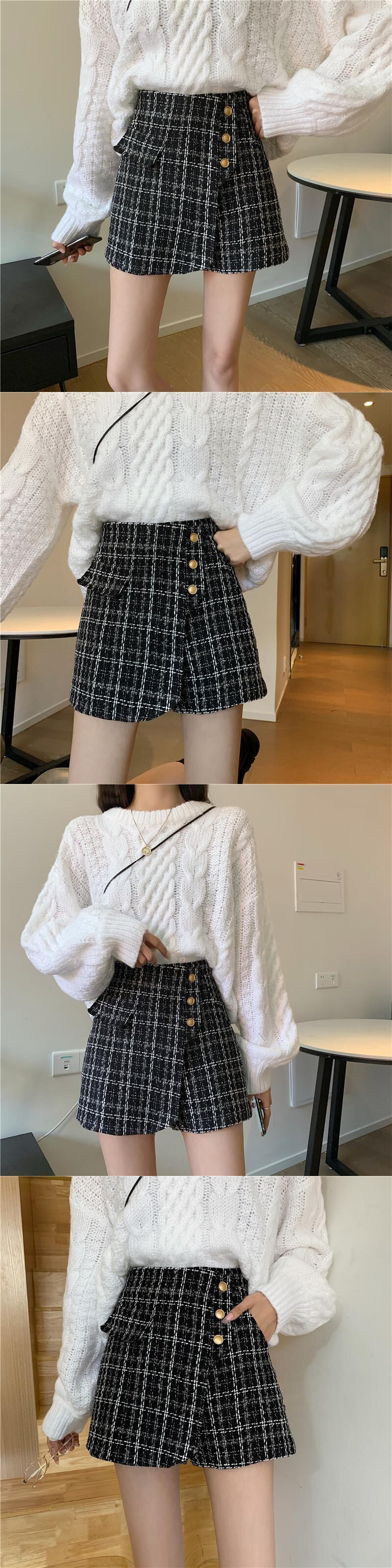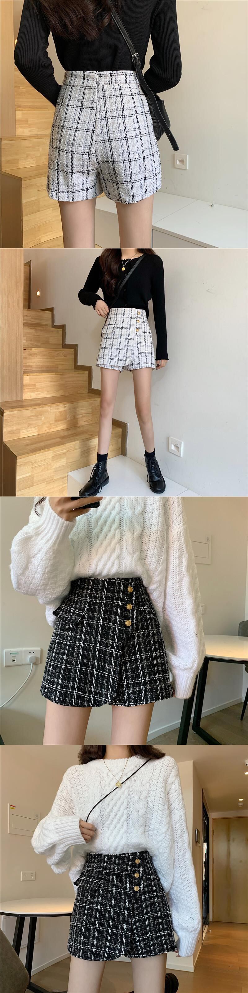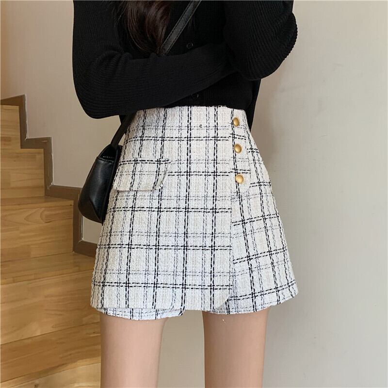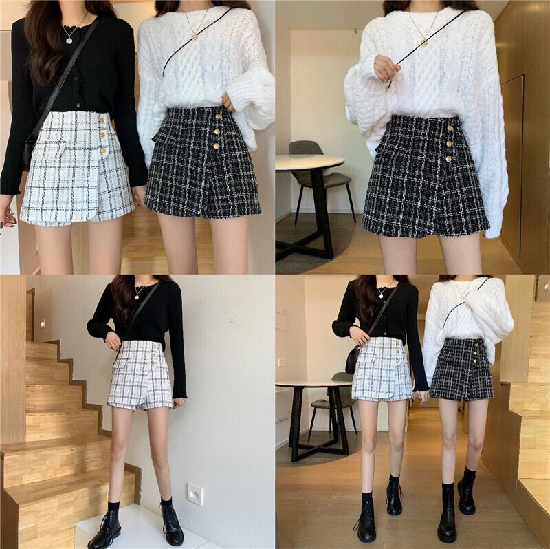 スタンダードツィード格子柄パンツ オータムウィンタースタイルハイウェストウェストショーツ スカート 薄手カジュアル レトロ 秋物 冬物 ブルマー YY-ファッション98626598522