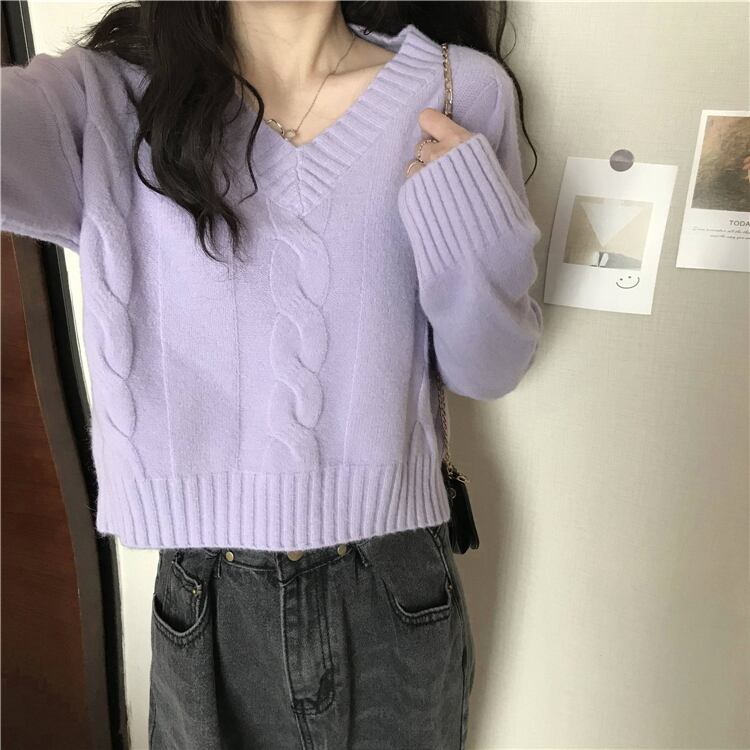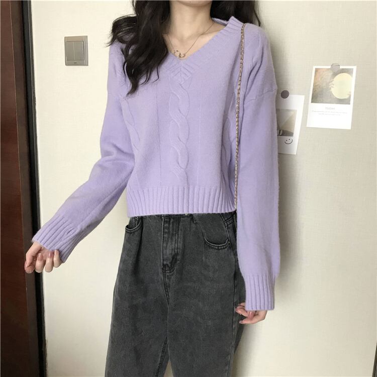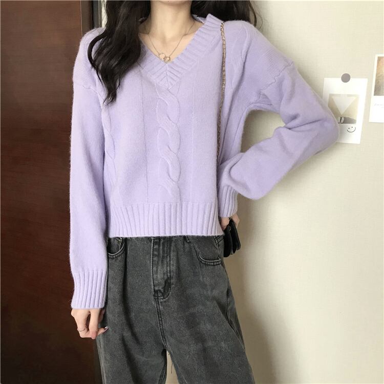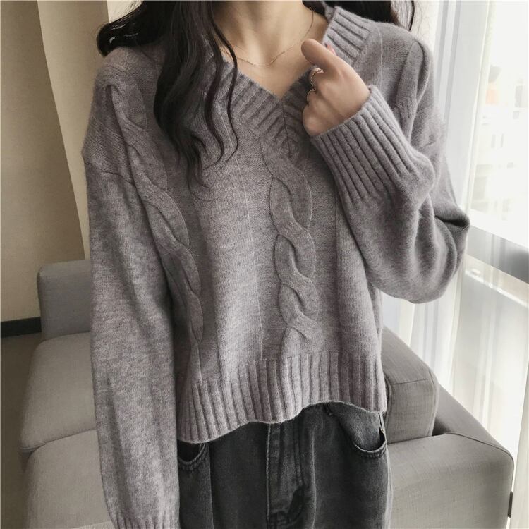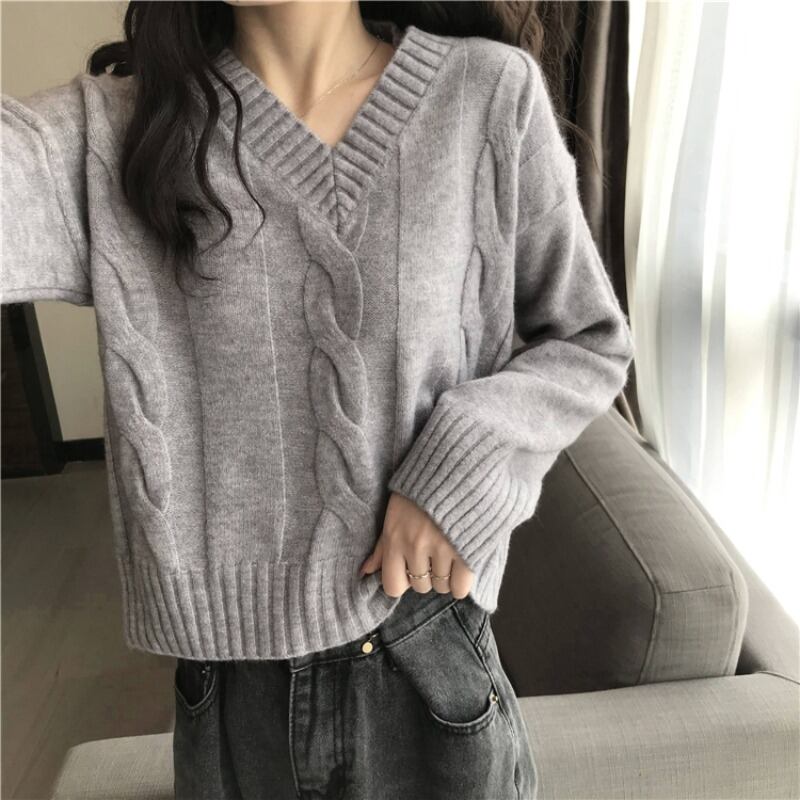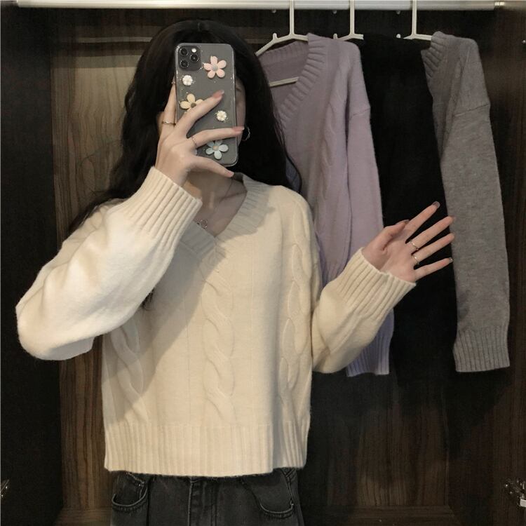 ジャケット オータムウィンターVネックルーズプルオーバー セーター 秋物 冬物 YY-ファッション54381231672