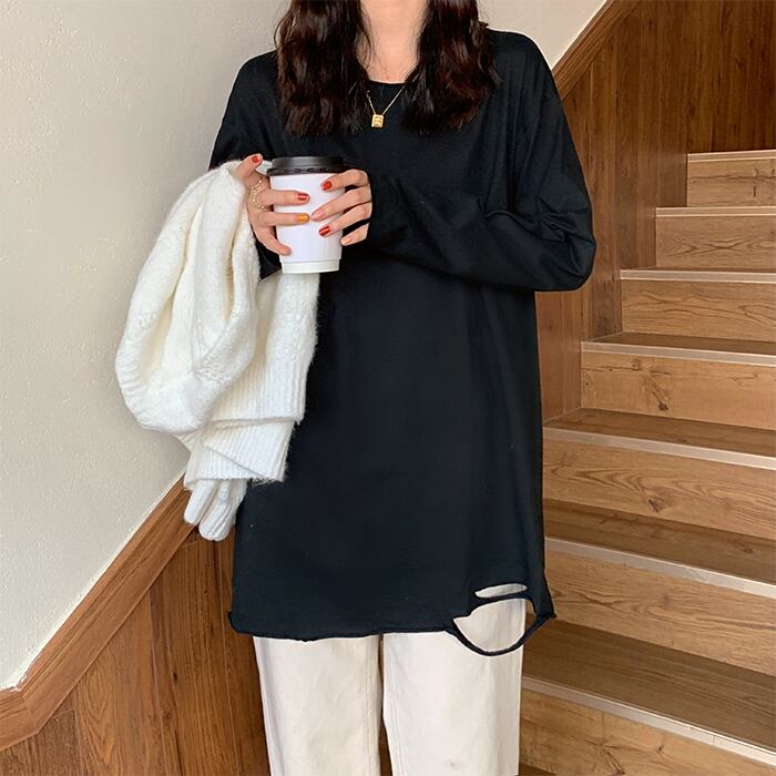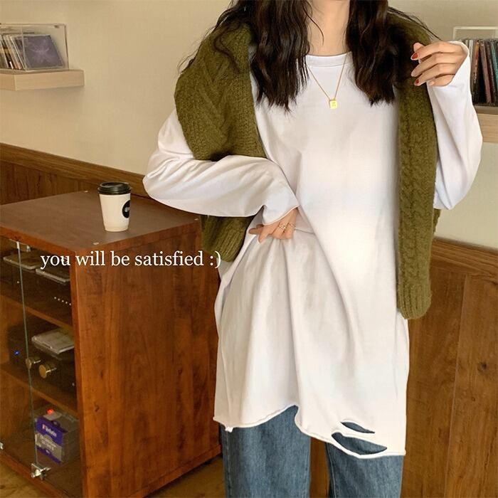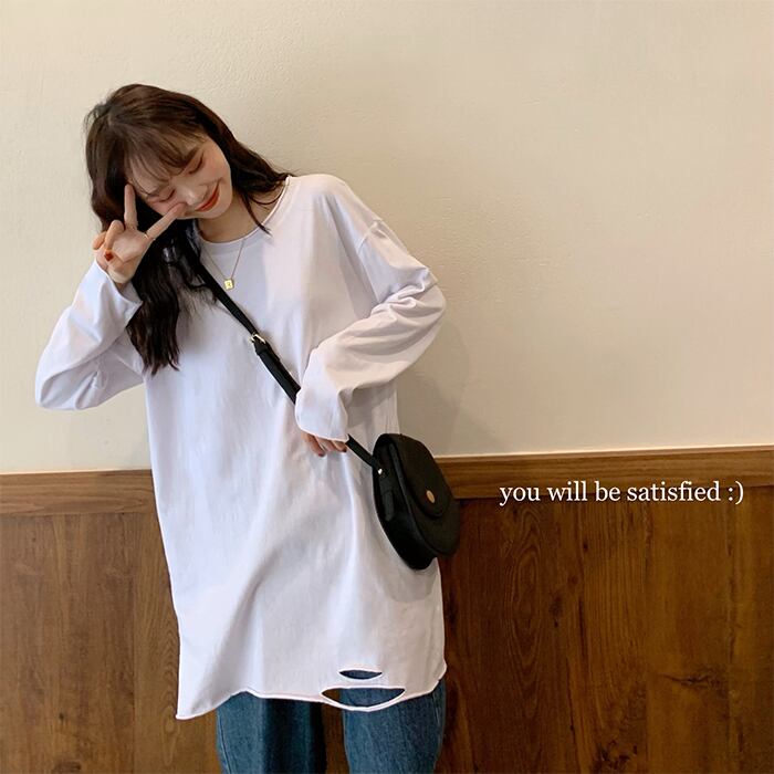 Tシャツ シャツ トップス スプリングルーズプルオーバー ロング 春物 YY-ファッション77651608145