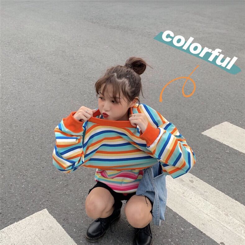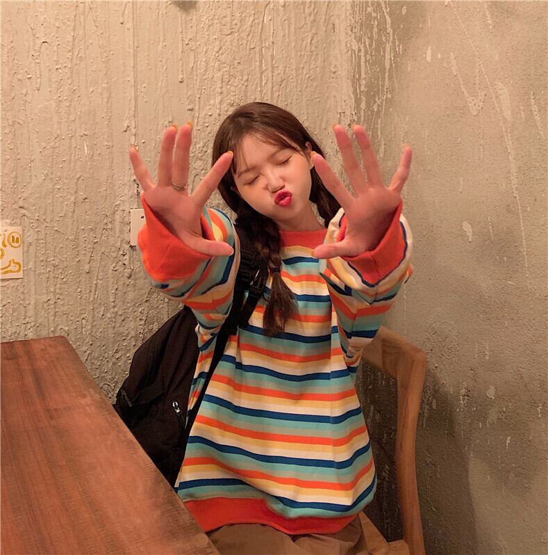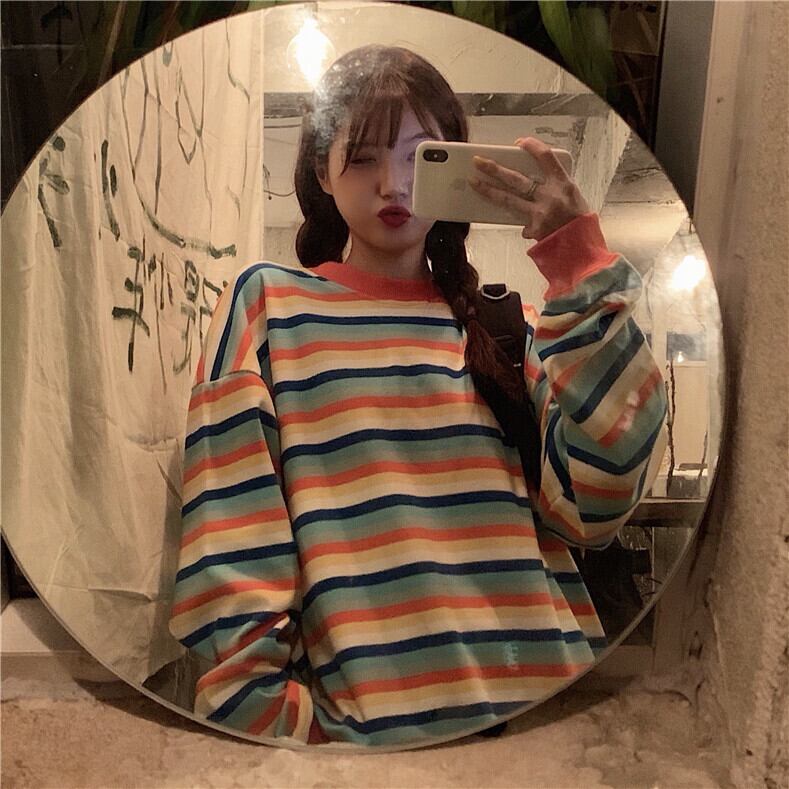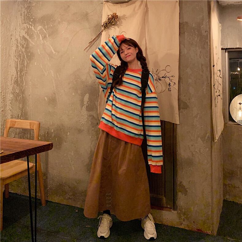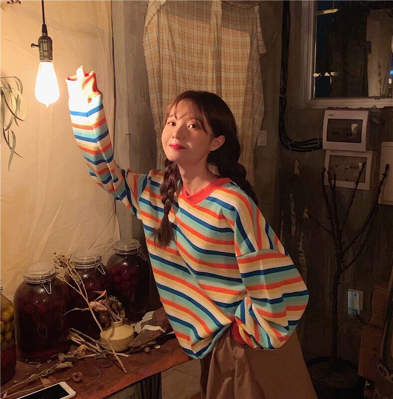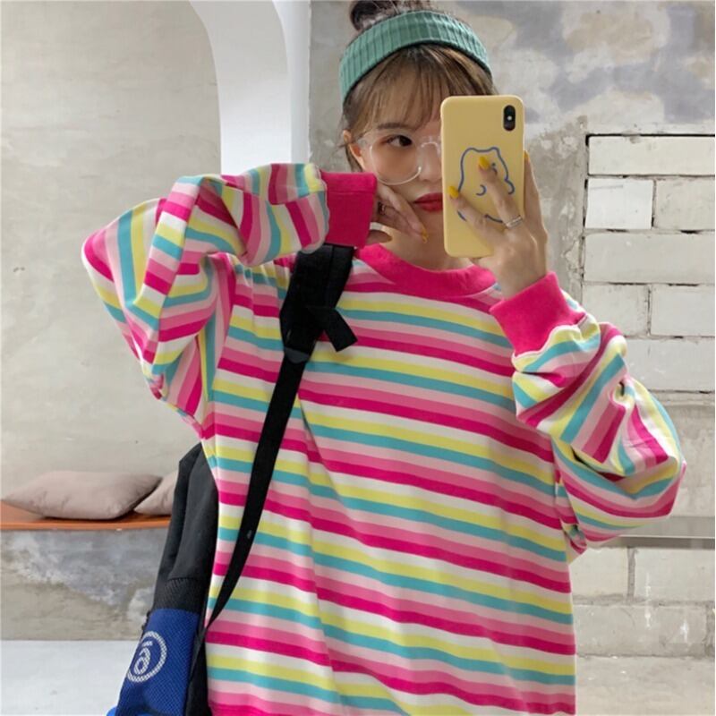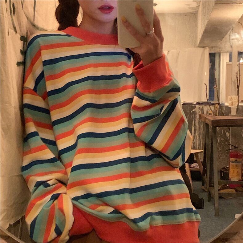 ストライプセーター スプリングルーズ薄手トップス ロング 春物 YY-ファッション71590977860