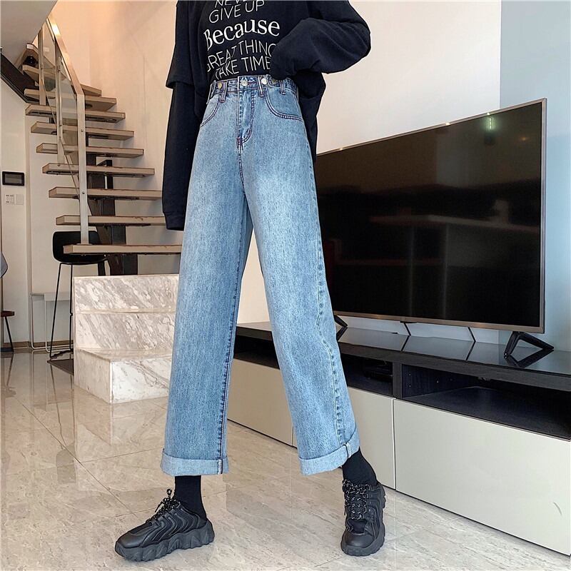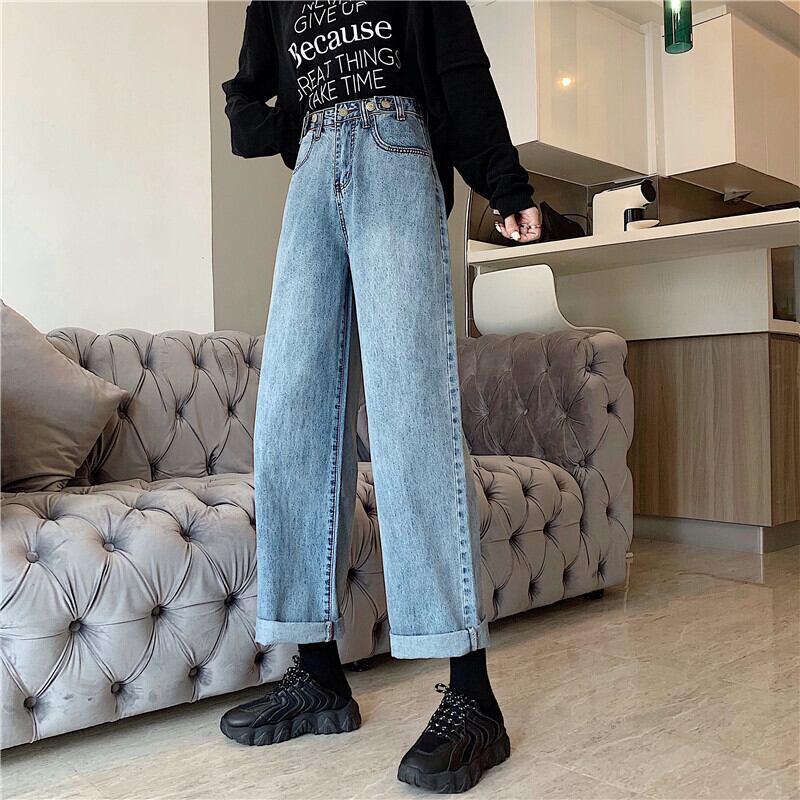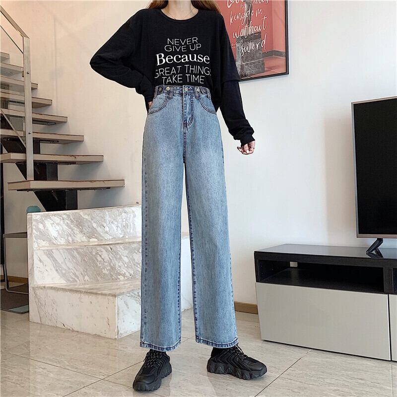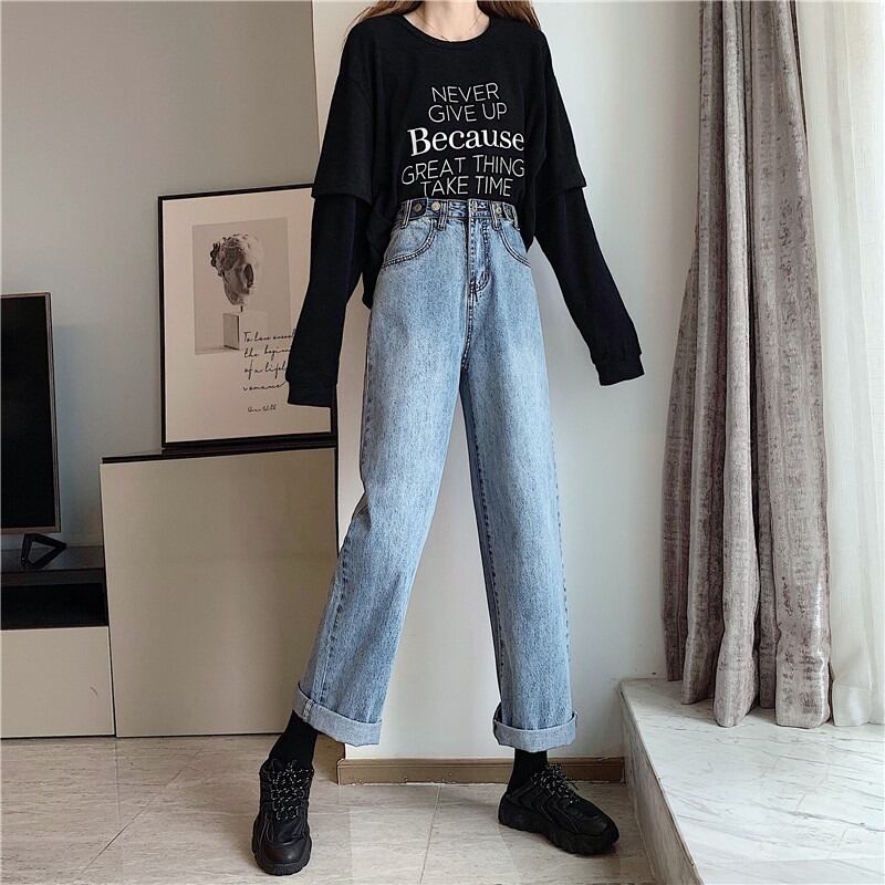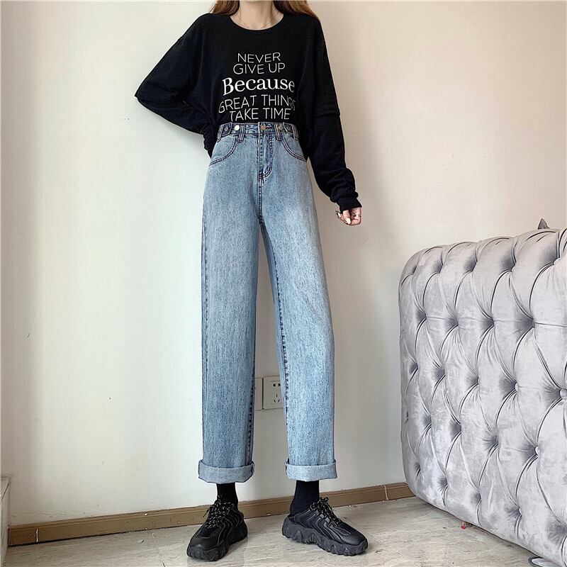 ラインジーンズ スプリングスタンダードハイウェストルーズ薄手パンツ レトロ 春物 YY-ファッション55408721205