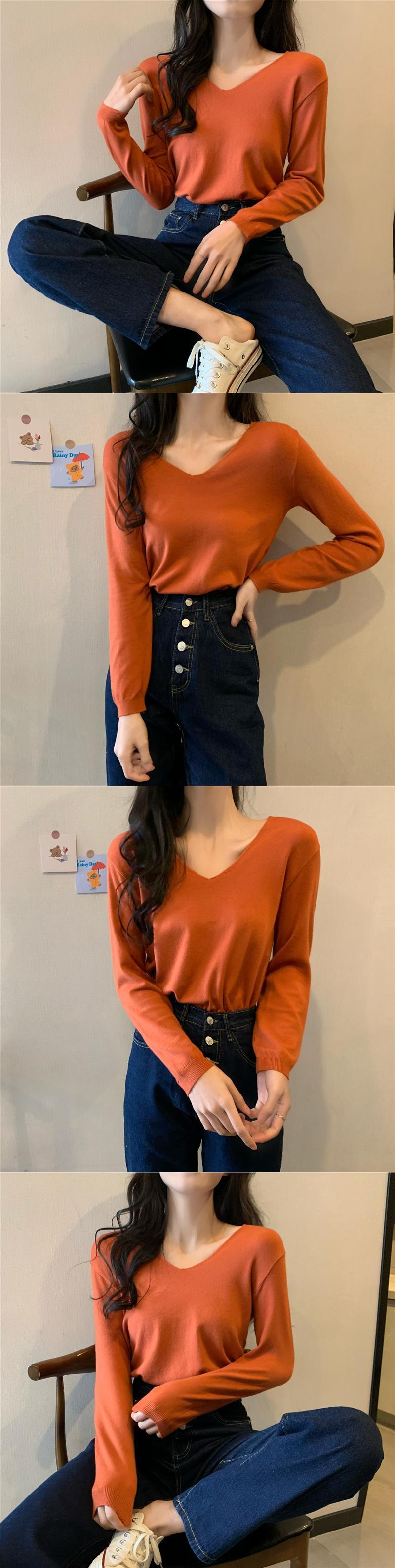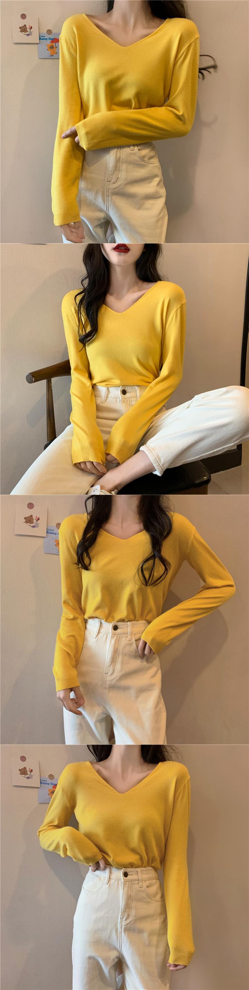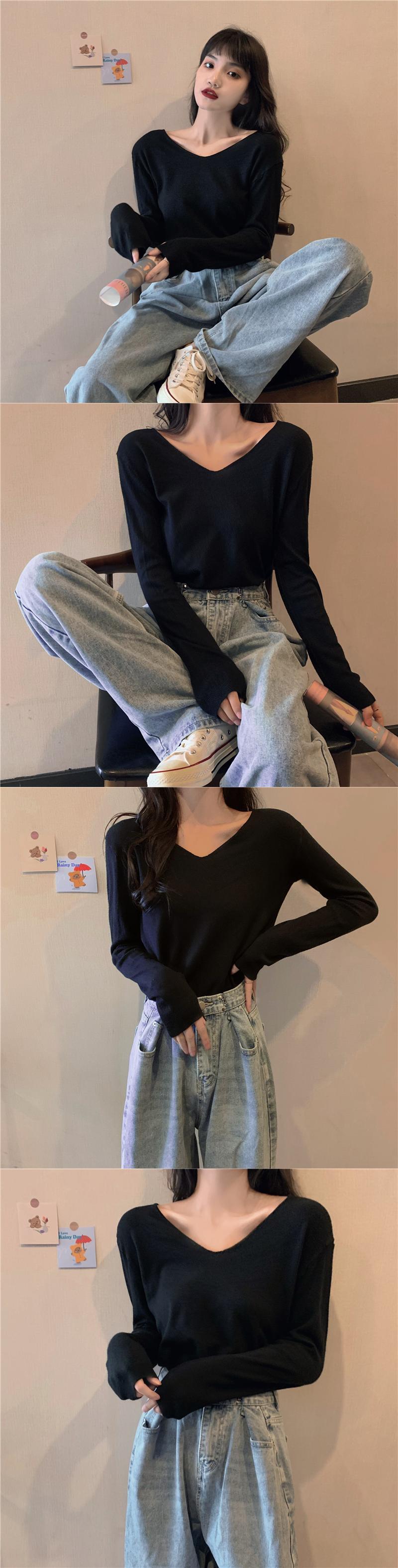 ブラックセーター スプリングオータムスタイルVネックスリムシャツ トップス ロング 春物 秋物 YY-ファッション51195403568