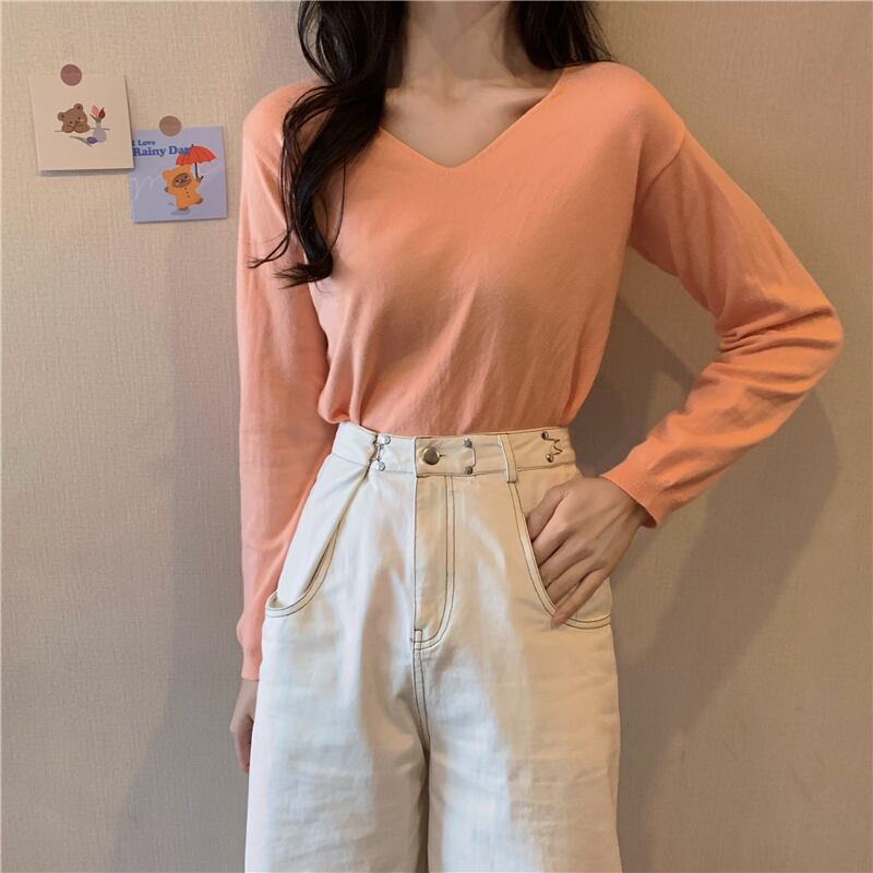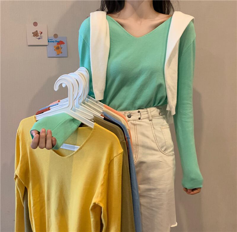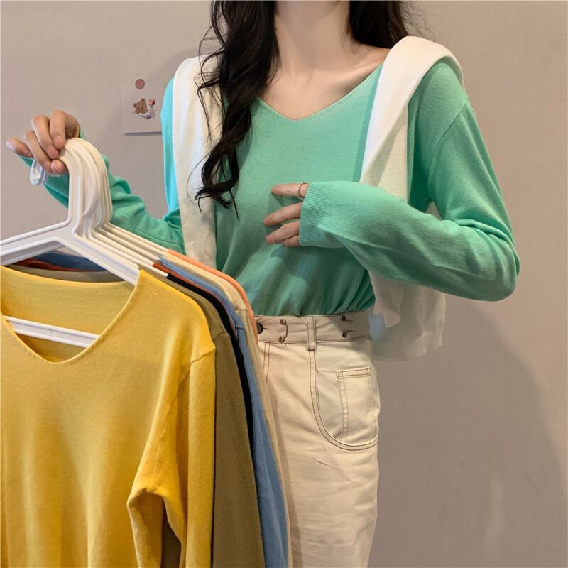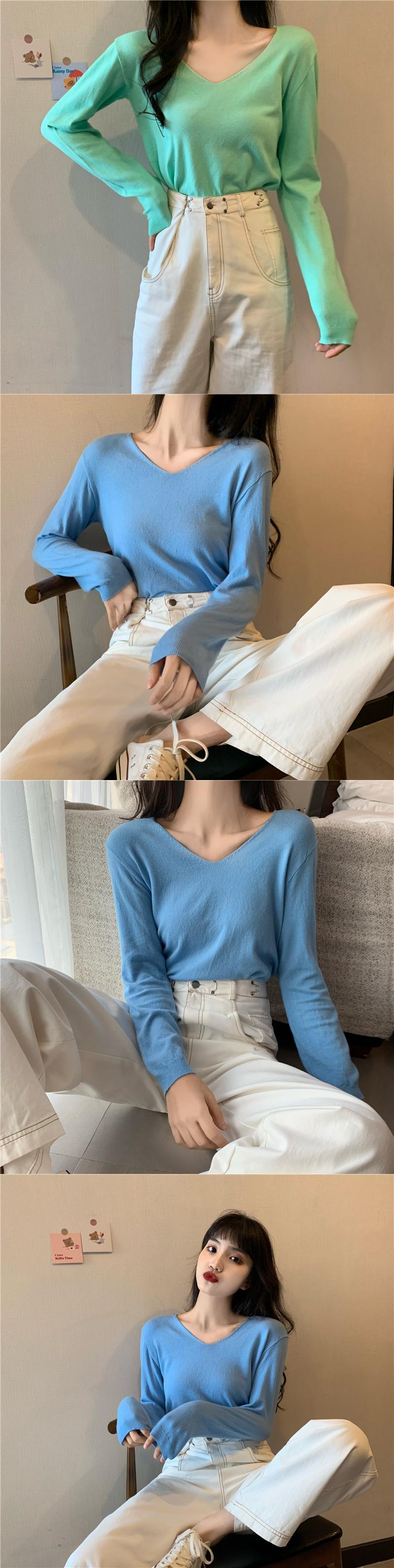 ブラックセーター スプリングオータムスタイルVネックスリムシャツ トップス ロング 春物 秋物 YY-ファッション51195403568