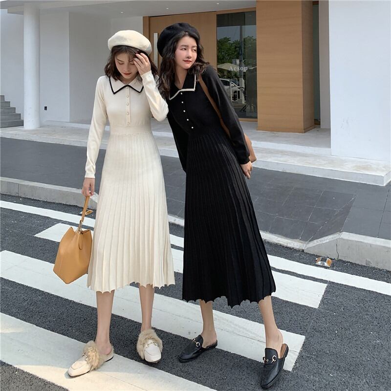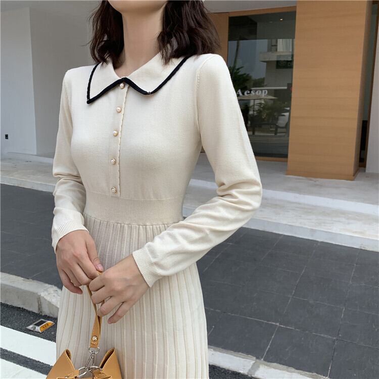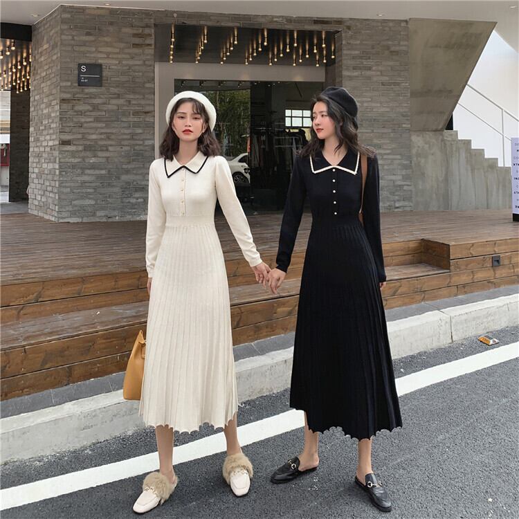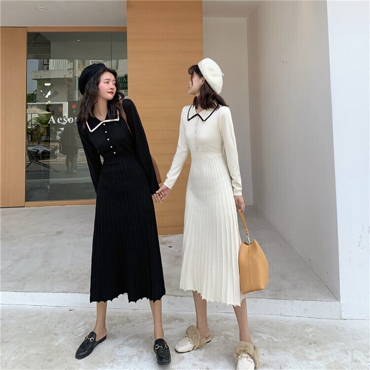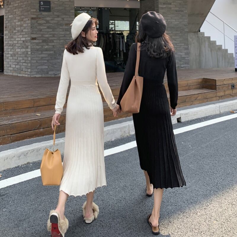 薄手ハイウェストニットドレス オータムウィンタースタンダードAラインスカート ロング レトロ 秋物 冬物 YY-ファッション20268194365