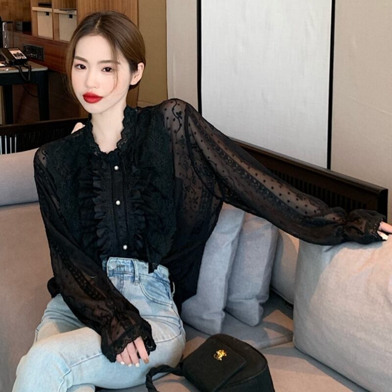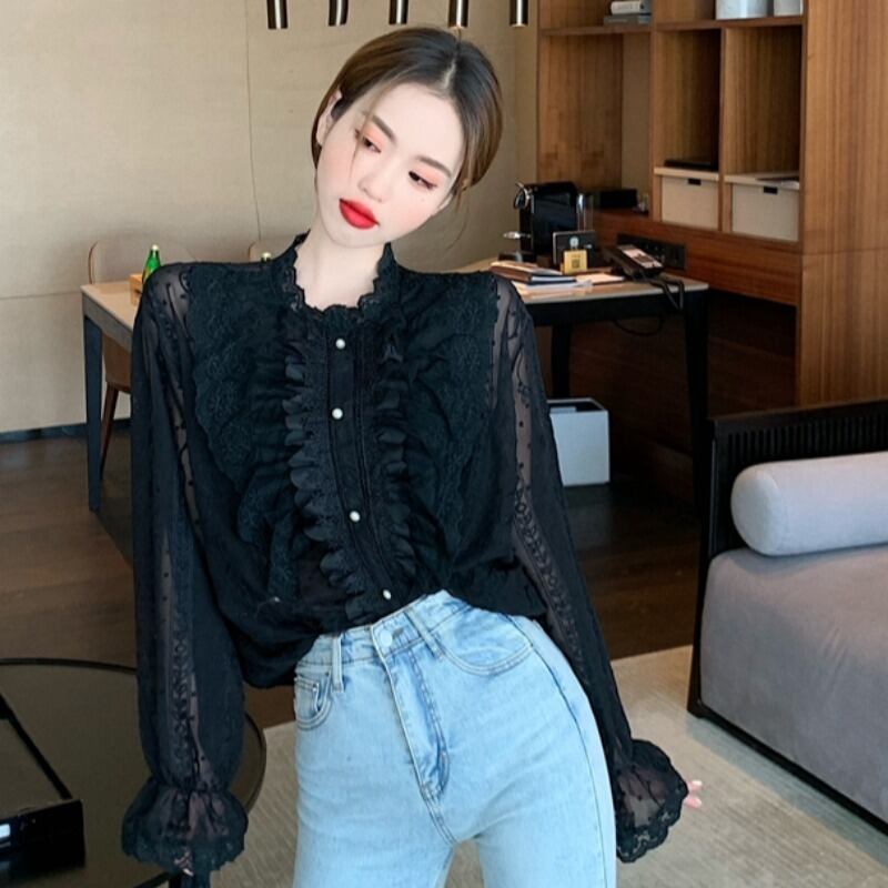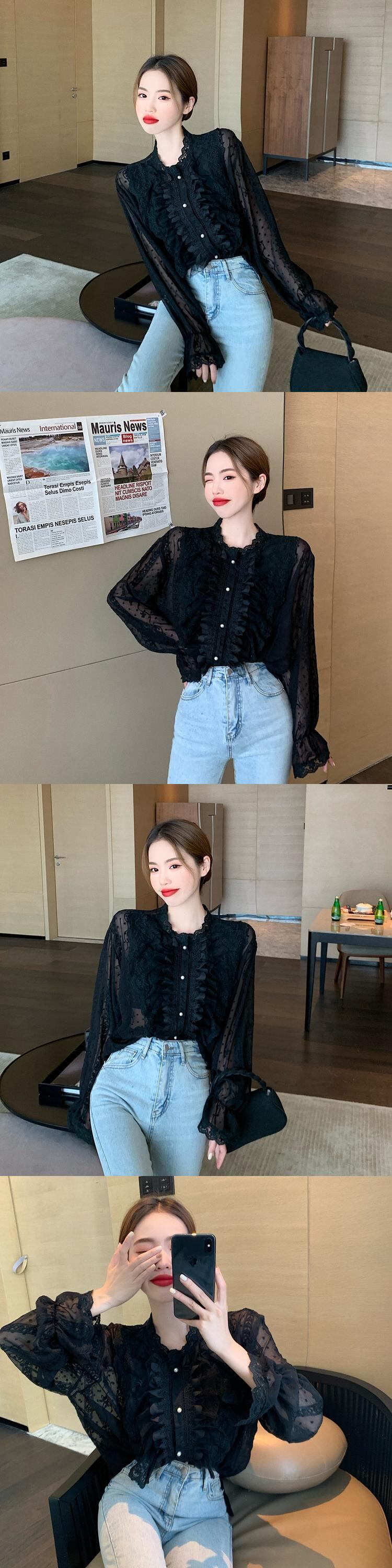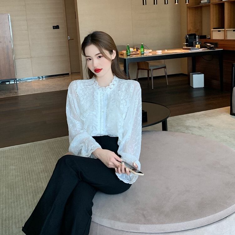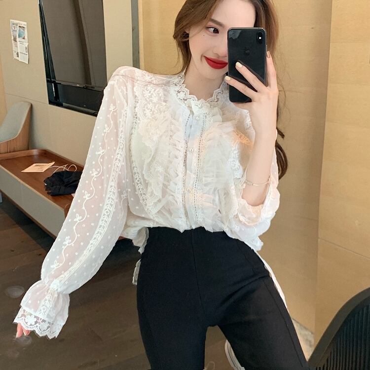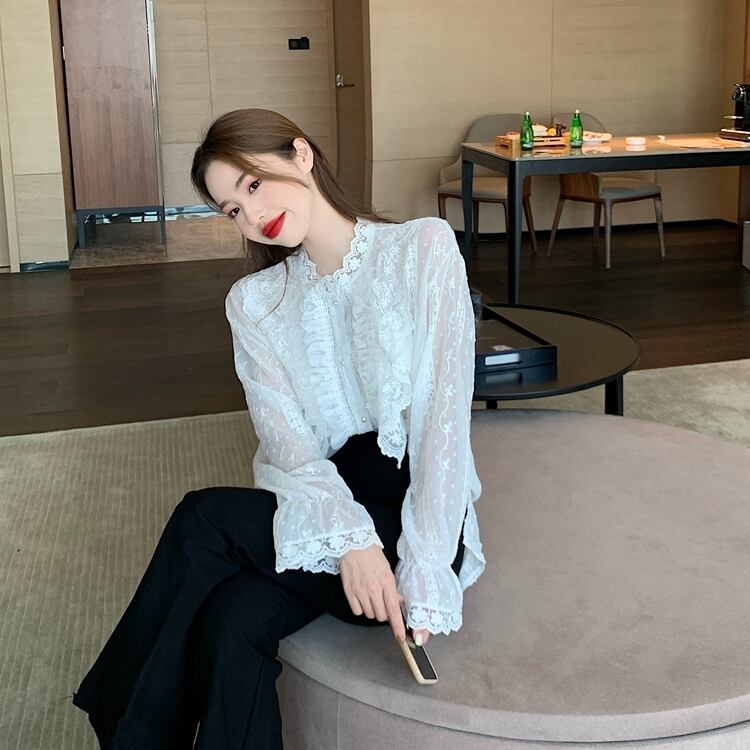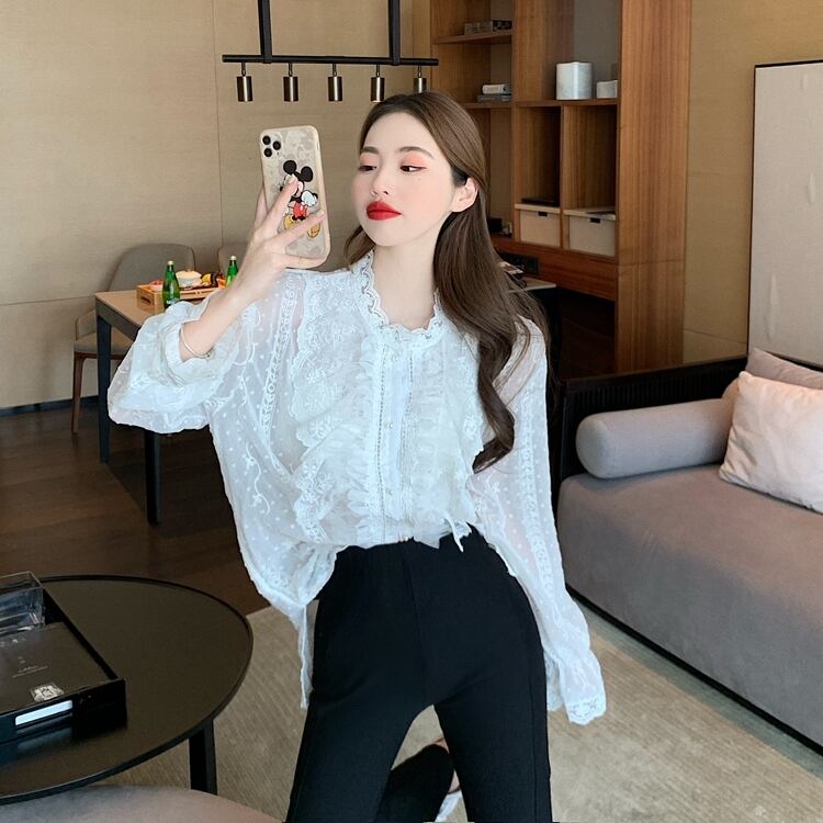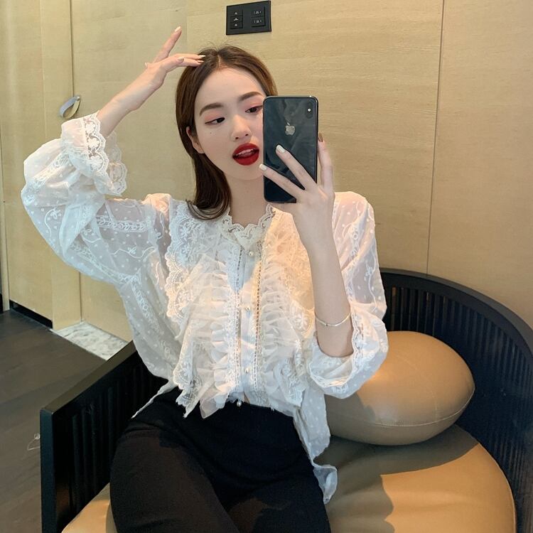 レースシャツ レディースルーズスタイルホワイトスプリングオータムトップス ロング 春物 秋物 YY-ファッション847161797