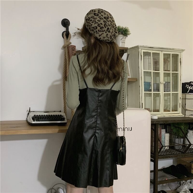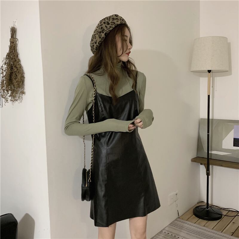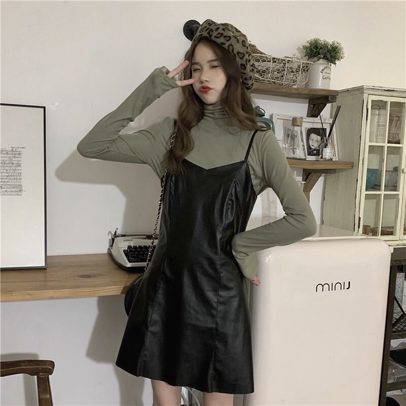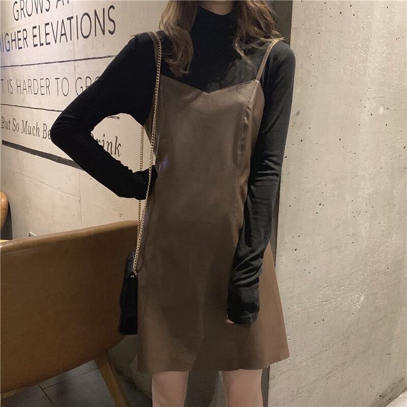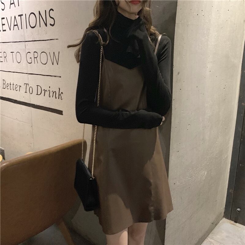 色:緑のワンピース,黒の内側の部分,ブラウンサスペンダースカートワンピース,ブラックサスペンダードレスワンピース